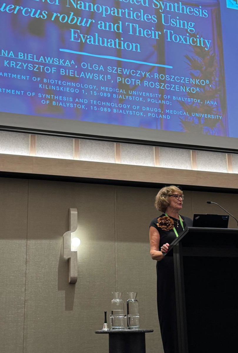 W ramach działań na rzecz zrównoważonego rozwoju i ochrony środowiska na Uniwersytecie Medycznym w Białymstoku, w dniach 8–12 grudnia 2024 r. prof. Anna i Krzysztof Bielawscy uczestniczyli w 2nd Australian Conference on Green & Sustainable Chemistry (GSC1617), odbywającej się w Melbourne. Prof. dr hab. Anna Bielawska wygłosiła referat zatytułowany „Phytochemical-Assisted Synthesis of Silver Nanoparticles Using Quercus robur and Their Toxicity Evaluation”, natomiast prof. dr hab. Krzysztof Bielawski zaprezentował pracę zatytułowaną „Sustainable Nanoparticle Formation Using Scorzonera hispanica Extract: Synthesis, Characterization, and Toxicity”. Tematyka wystąpień dotyczyła innowacyjnych metod wykorzystania ekstraktów roślinnych do otrzymywania sprofilowanych funkcjonalnie nanocząstek. Referaty spotkały się z żywym zainteresowaniem uczestników konferencji.