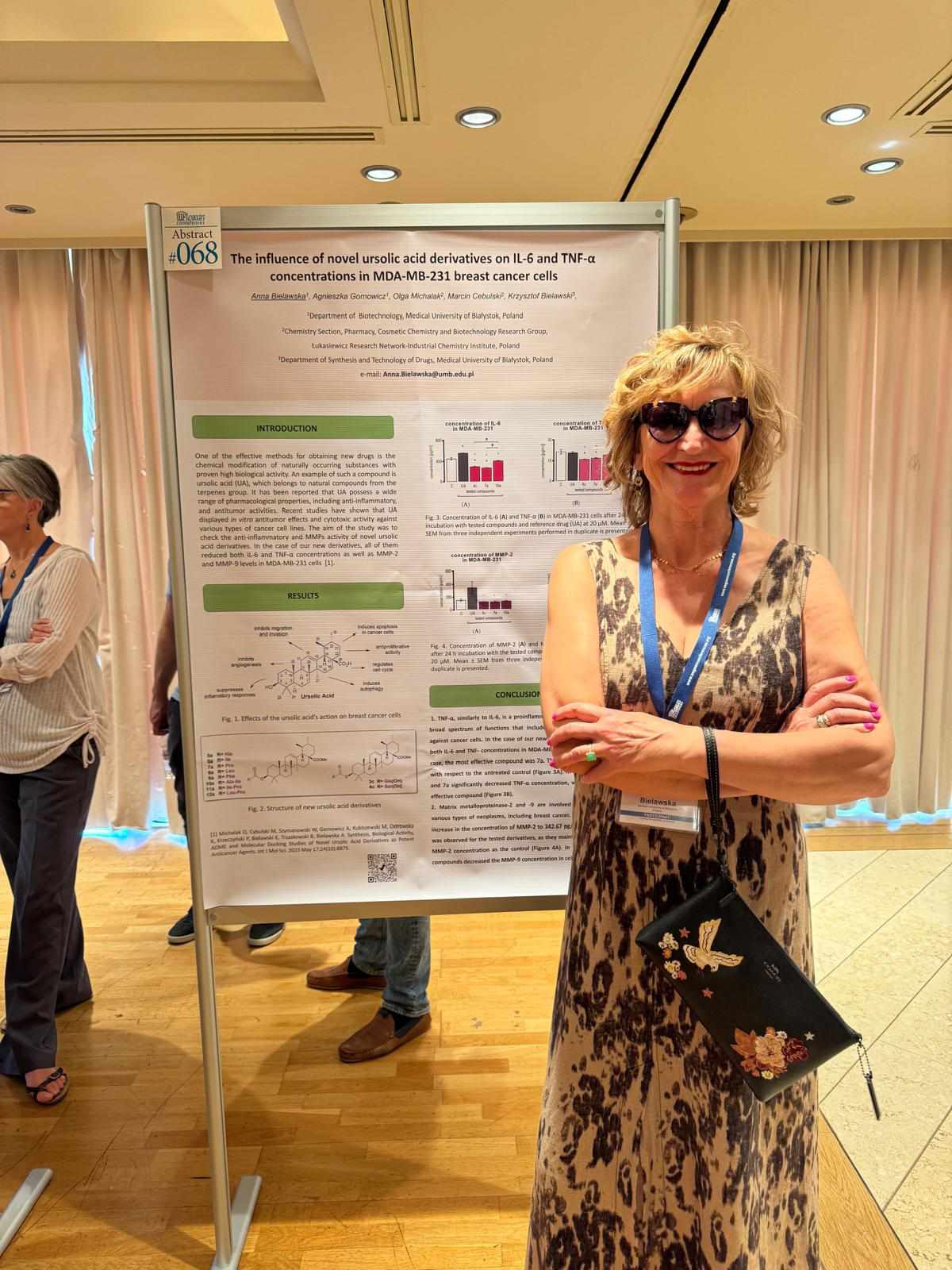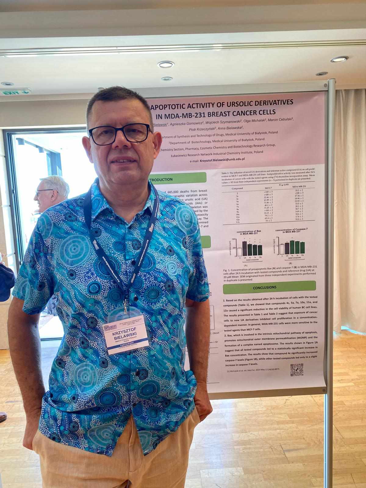 Podczas 22nd European Symposium on Organic Chemistry w dniach 9-13.07. 2023 w Gandawie, prof. Anna Bielawska i prof. Krzysztof Bielawski przedstawili wyniki swoich najnowszych badań naukowych projektu NAWA „Przeciwciała monoklonalne w skojarzeniu z analogami tiazolidynonu jako nowoczesna strategia przeciwnowotworowa”.