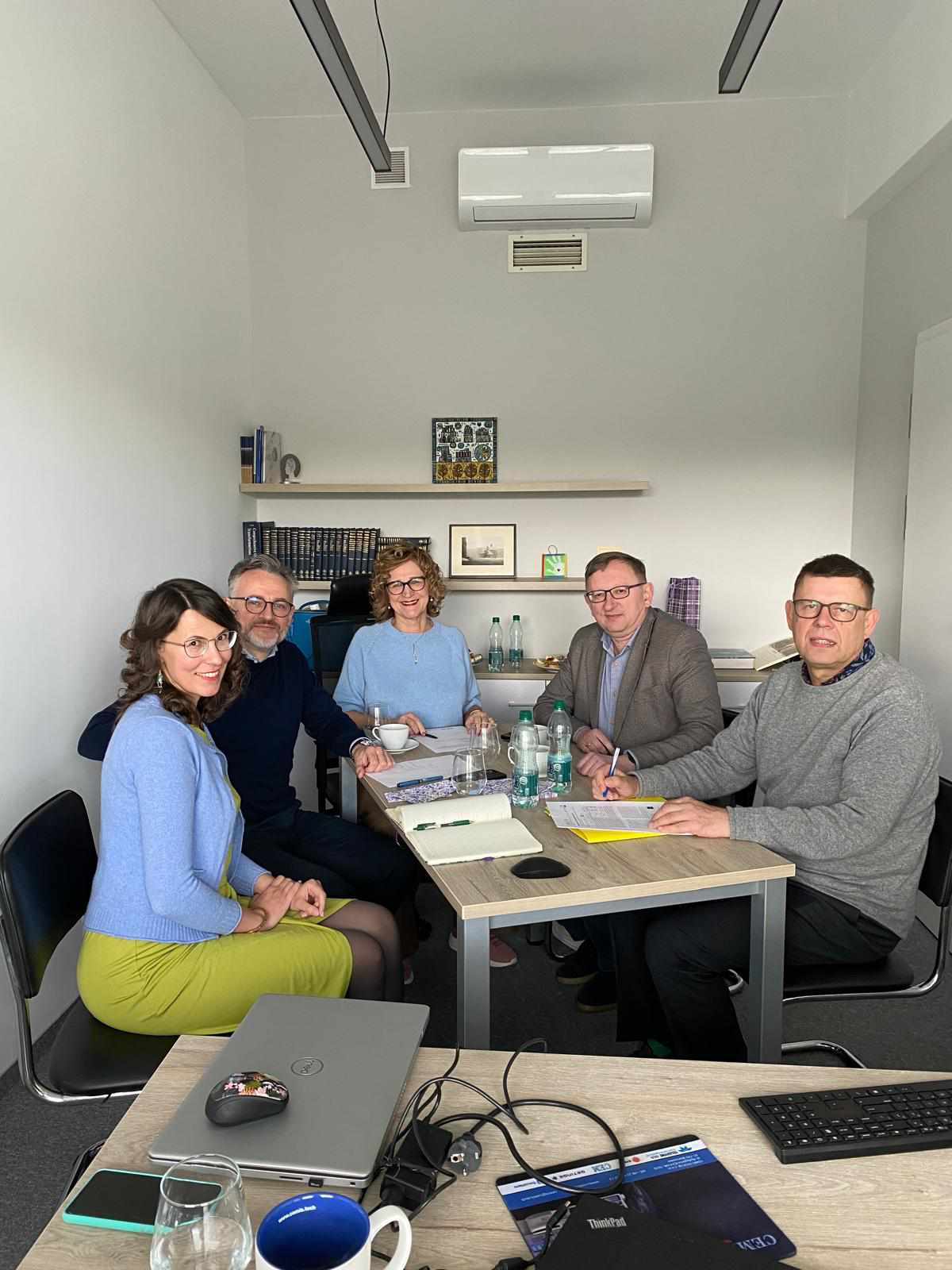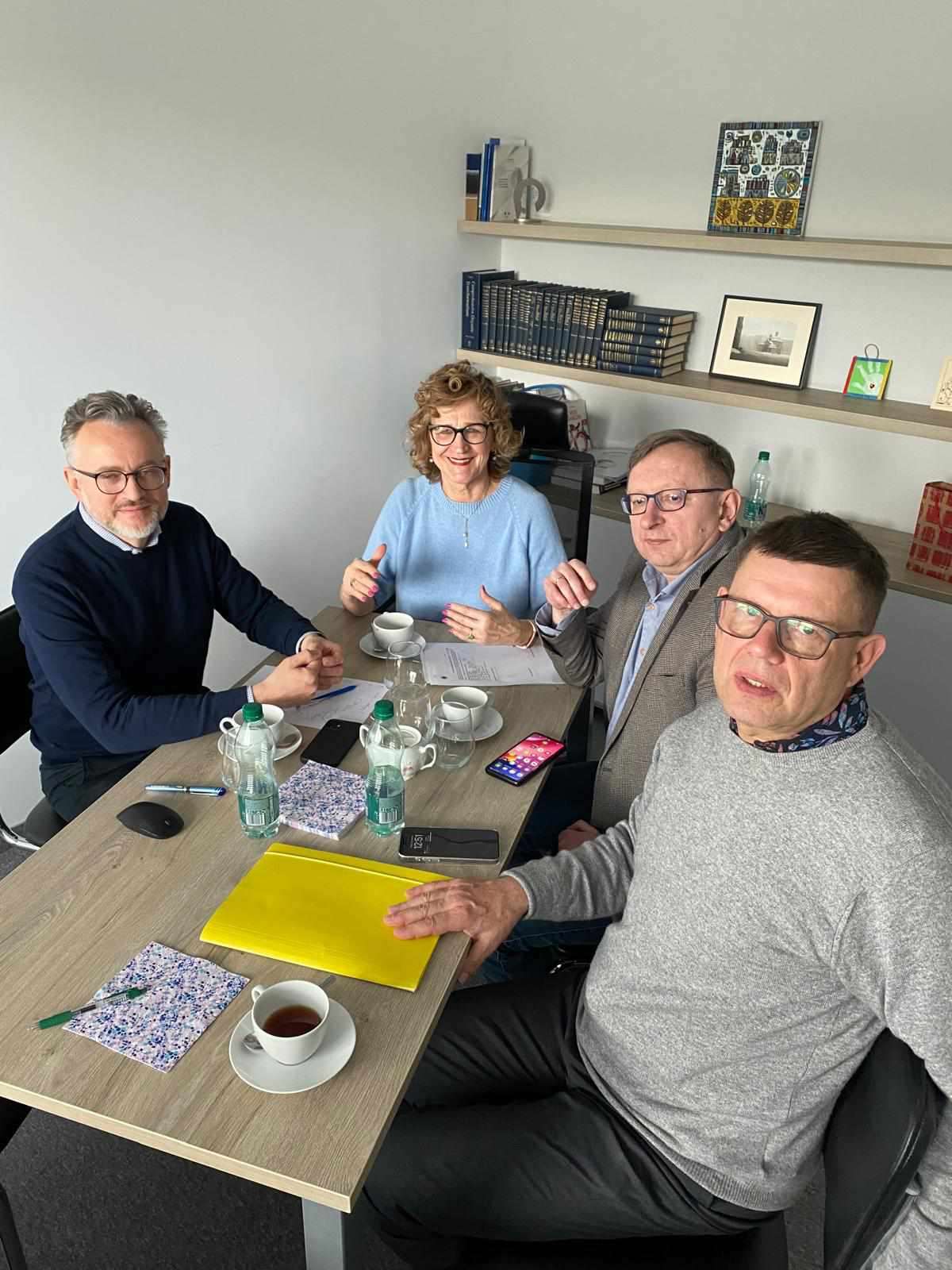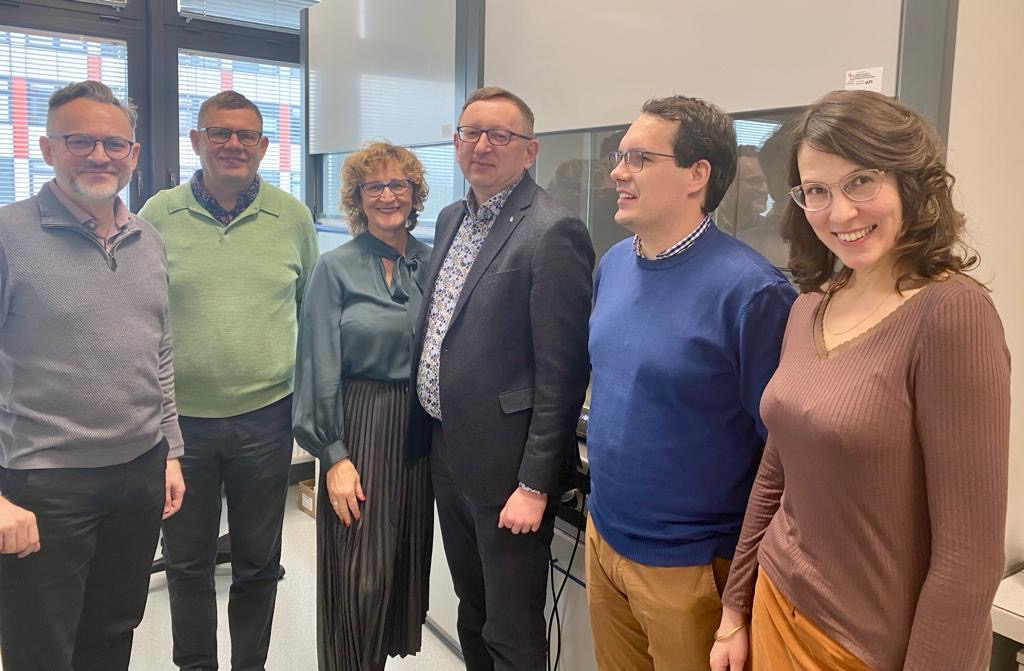 W dn. 12.01-13.01.2024r. w Katedrze i Zakładzie Chemii Organicznej Uniwersytetu Jagiellońskiego CM odbyło się spotkanie w ramach projektu finansowanego ze środków NAWA pt."Przeciwciała monoklonalne w skojarzeniu z analogami tiazolidynonu jako nowoczesna strategia przeciwnowotworowa" nr:BPI/PST/2021/1/00002/U/00001. W spotkaniu uczestniczył prof. Roman Lesyk z Lwowskiego Narodowego Uniwersytetu Medycznego im. Daniela Halickiego LNUM, prof. Anna Bielawska, prof. Krzysztof Bielawski z Uniwersytetu Medycznego w Białymstoku oraz gospodarz spotkania prof. Paweł Zajdel kierownik Katedry i Zakładu Chemii Organicznej Uniwersytetu Jagiellońskiego CM.