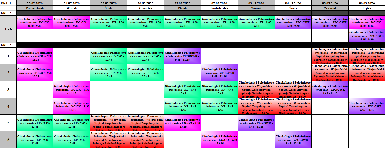 Uniwersytet Medyczny w Białymstoku. Harmonogram zajęć.
