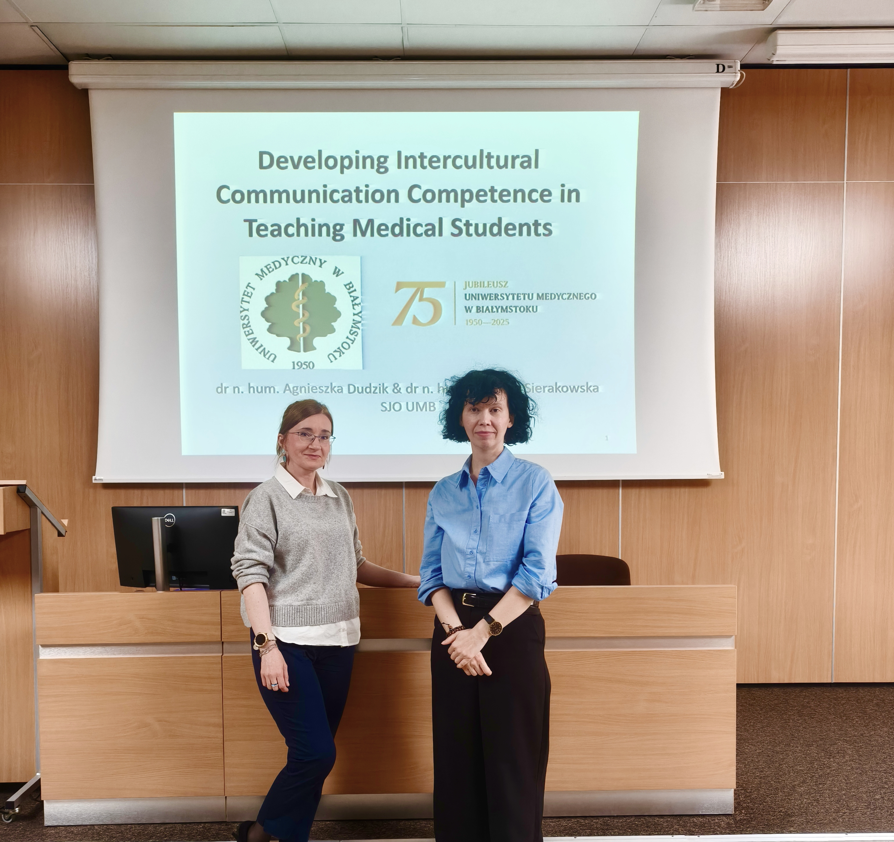W dn. 17.06.2025 dr n. hum. Agnieszka Dudzik i dr n. hum. Justyna Sierakowska  przeprowadziły warsztaty pt. Developing Intercultural Communication Competence in Teaching Medical Students dla pracowników dydaktycznych i uczestników Szkoły Doktorskiej UMB.