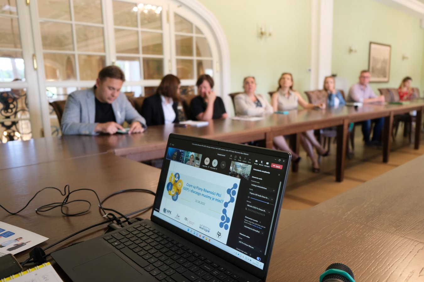 W ramach szkolenia wysłuchaliśmy bardzo ciekawych prezentacji pani Bogny Hryniszyn, Ekspertki z KPK NCBiR oraz pani Anny Grędzińskiej, Głównej specjalistki ds. równouprawnienia na Uniwersytecie Warszawskim. W dalszej części spotkania obie Panie odpowiadały na pytania członków Zespołu, m. in. o przygotowanie statystyk na potrzeby Planu Równości Płci, reakcje społeczności akademickiej na Inicjatywę Równości, organizację szkoleń podnoszących świadomość, dobre praktyki, przydatne wskazówki i ślepe zaułki przy tworzeniu planu. Dyskusja okazała się bardzo owocna i z pewnością wszyscy uczestnicy spotkania opuścili je z wieloma nowymi przemyśleniami.