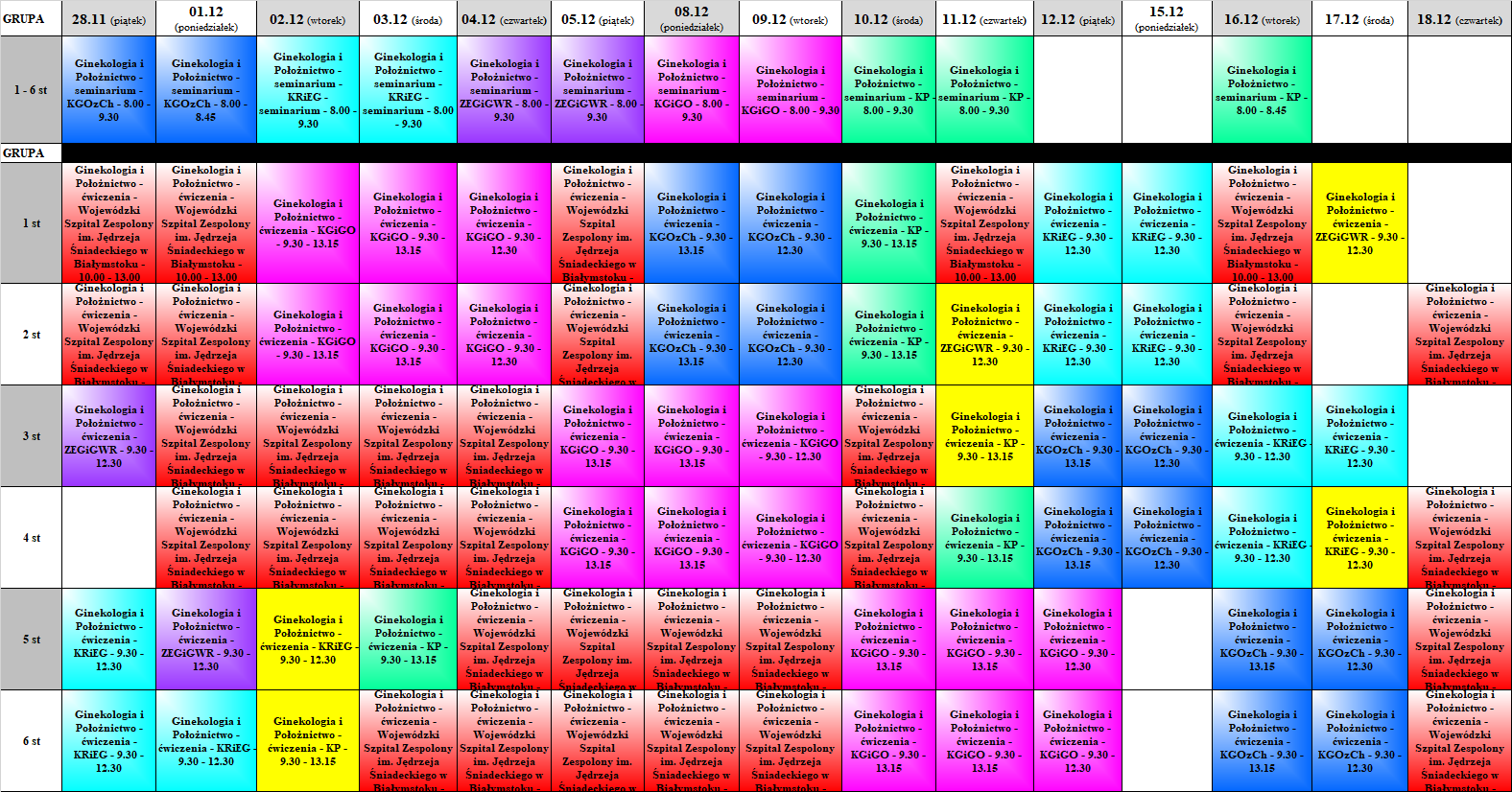 CSM – ćwiczenia odbywają się w Centrum Symulacji Medycznej ( kafelek żółty na harmonogramie) godz. 10.00-13.00