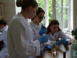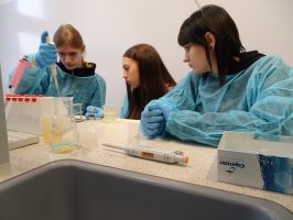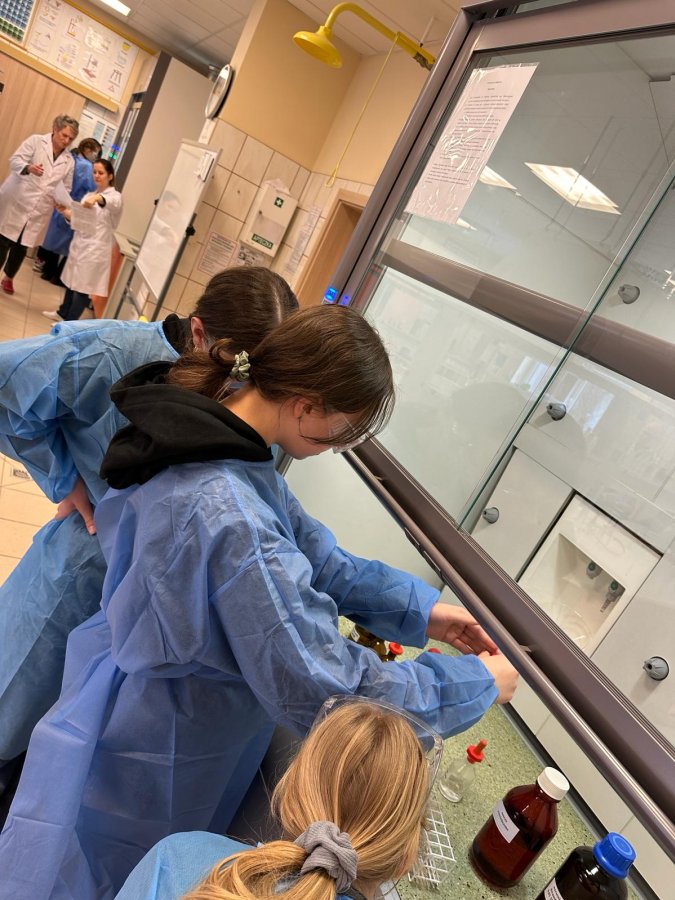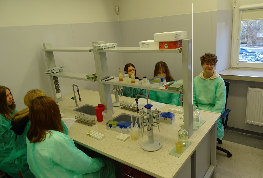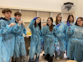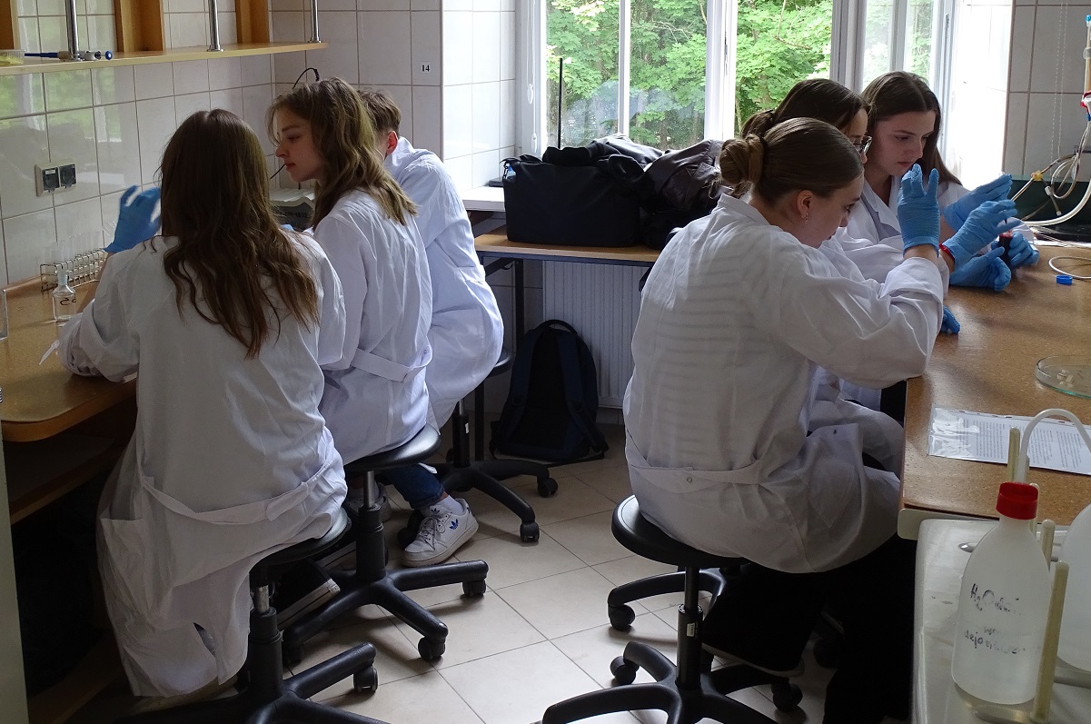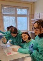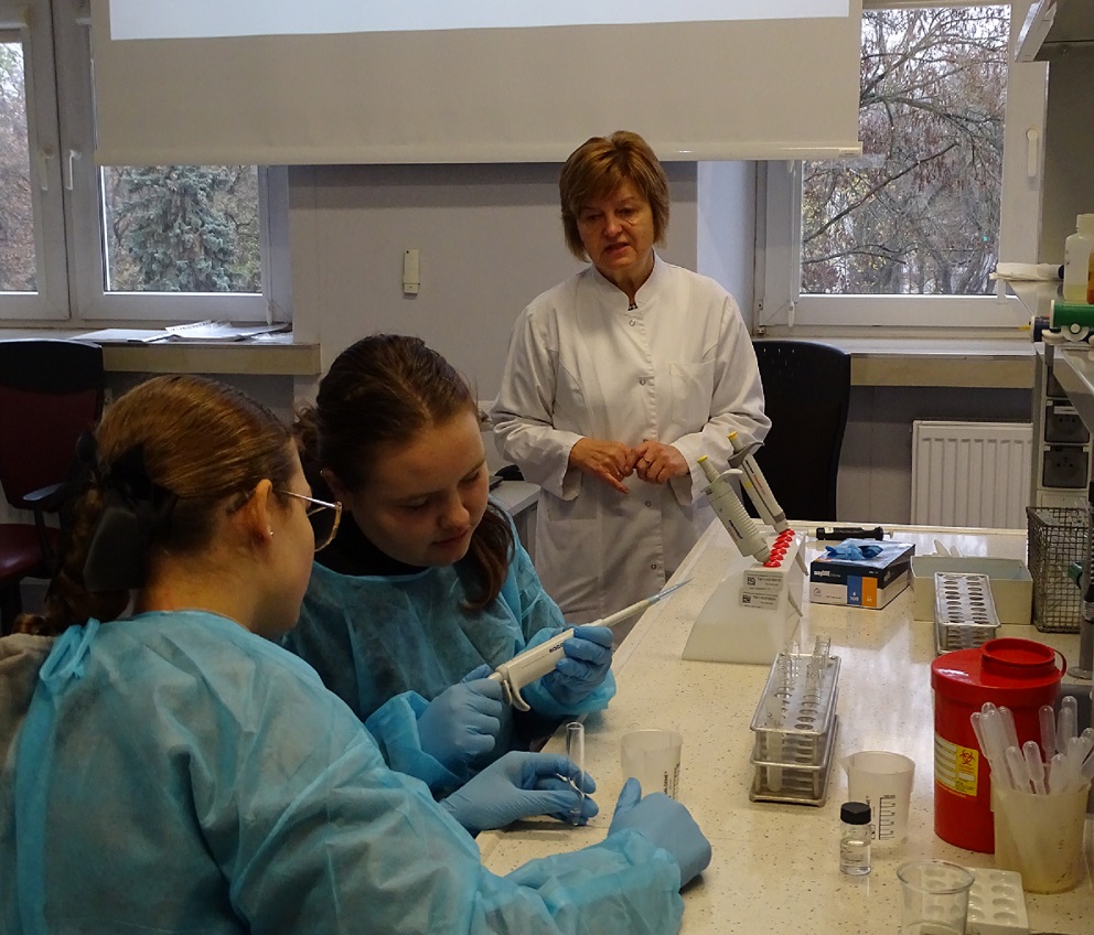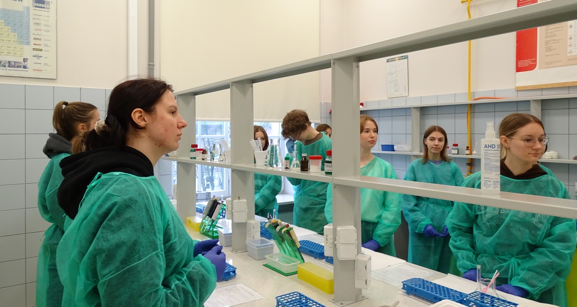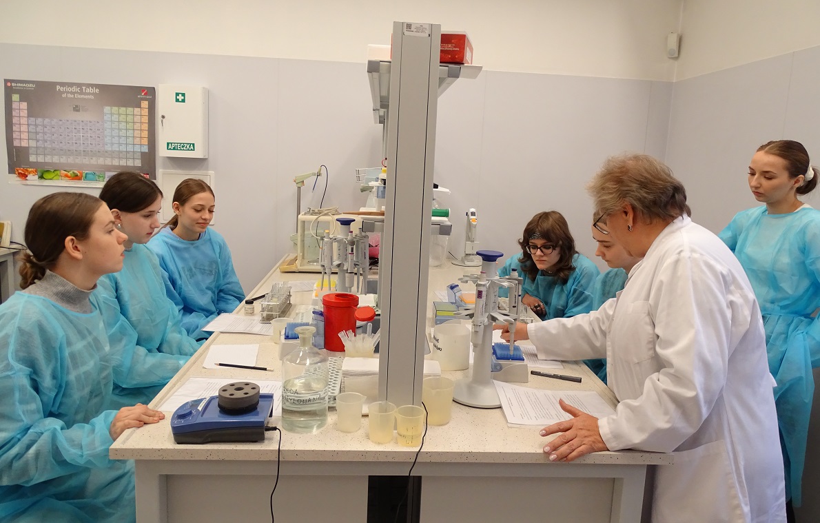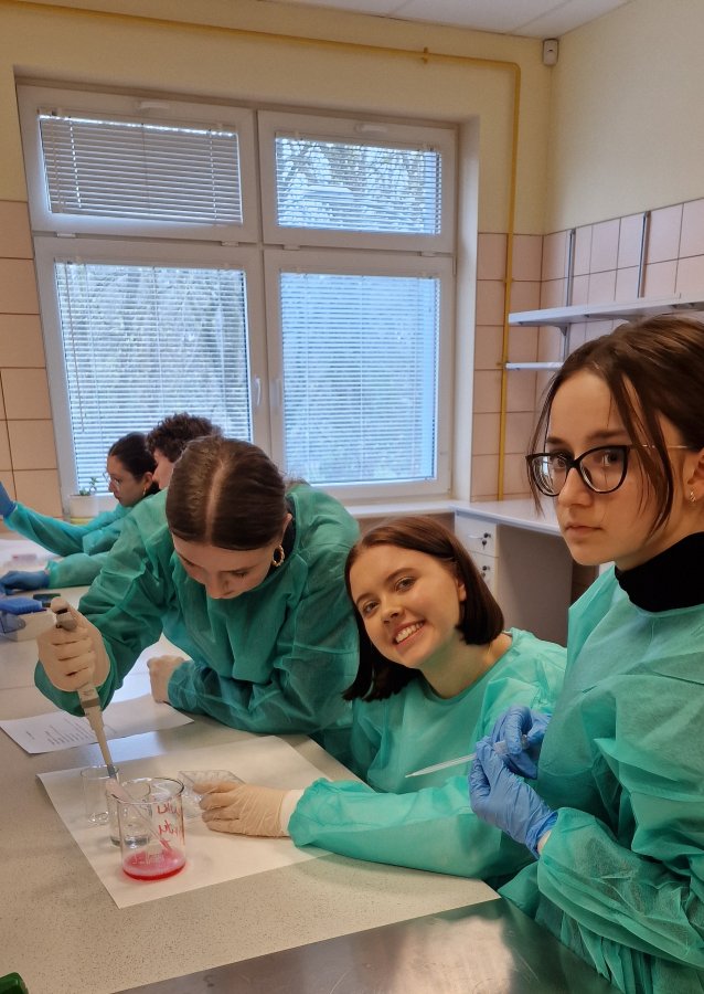 02.11.2024r. uczniowie z II Liceum Ogólnokształcącego w Augustowie im. Polonii i Polaków na Świecie brali aktywnie udział w warsztatach prowadzonych przez pracowników: Zakładu Biochemii Farmaceutycznej "Izolacja DNA z materiału biologicznego" oraz Zakładu Toksykologii "Zagrożenia dla zdrowia stwarzane przez dostępne bez recepty leki przeciwbólowe i przeciwgorączkowe"