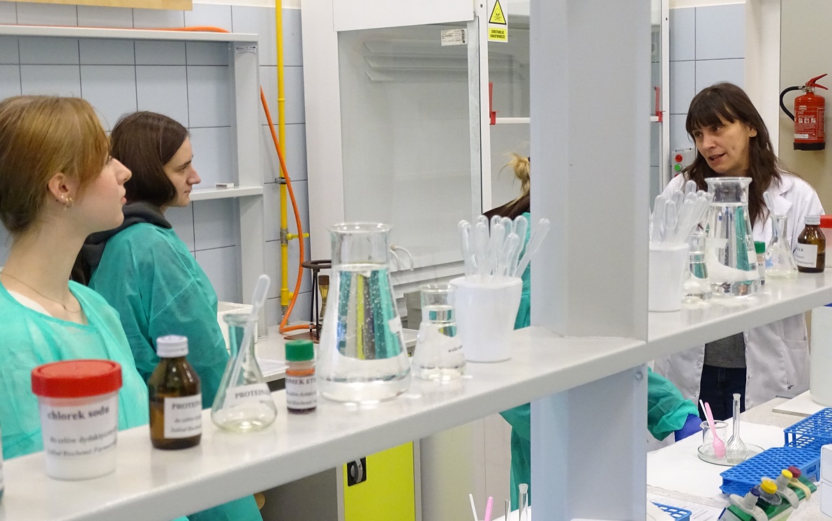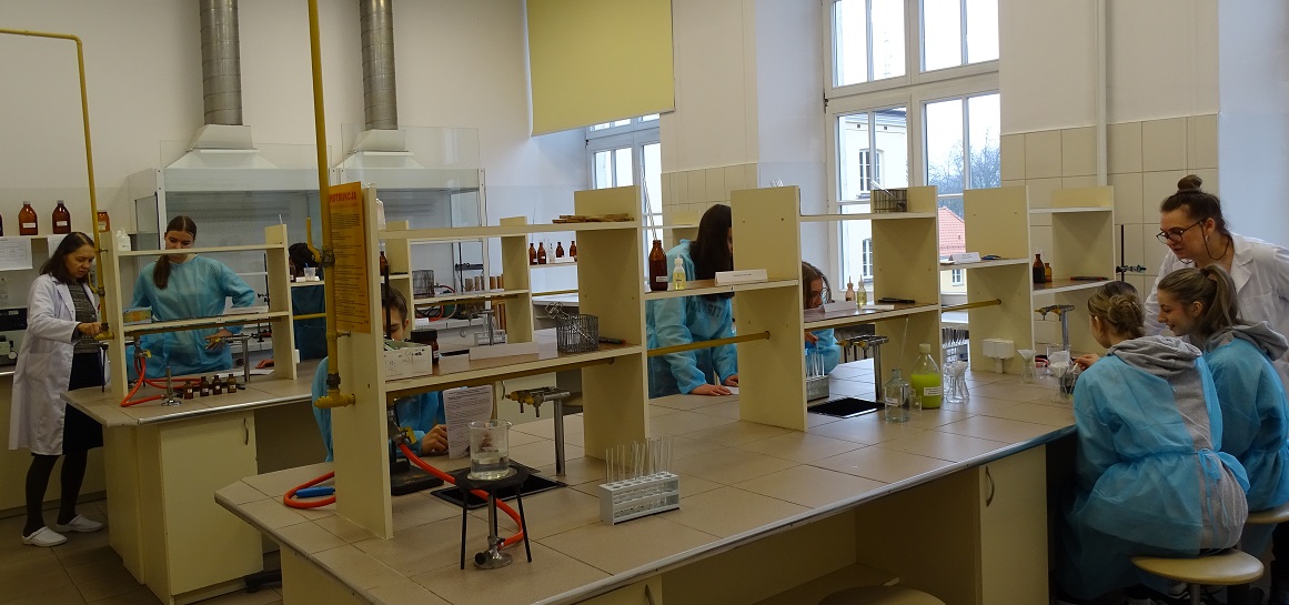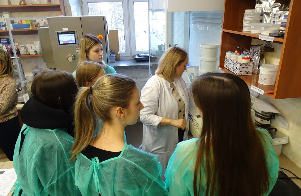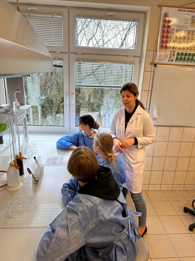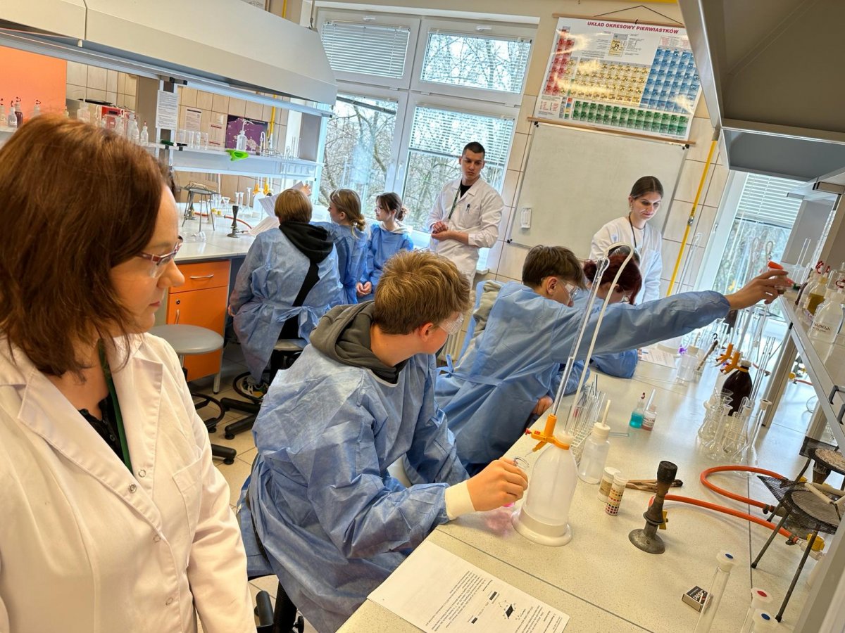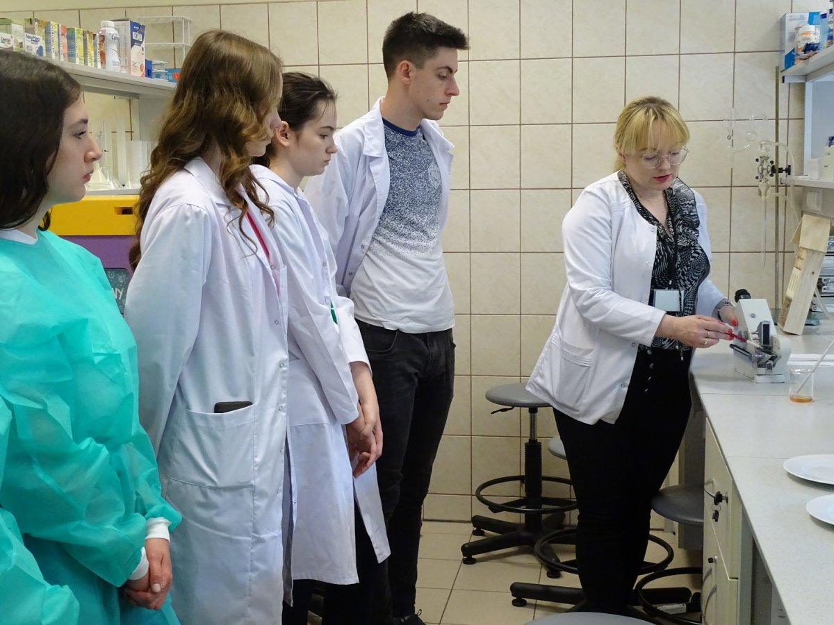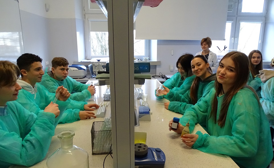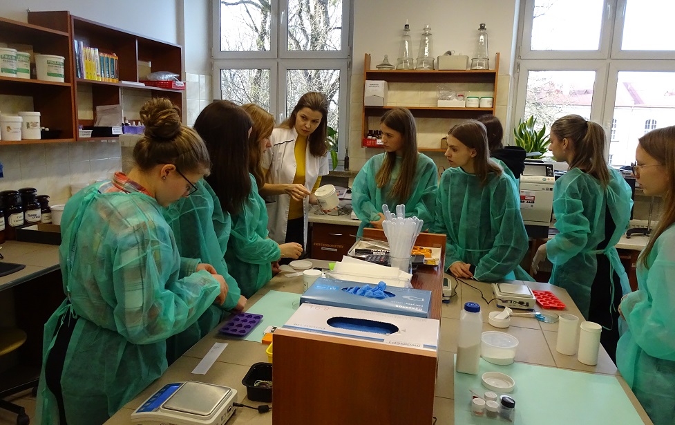 04 kwietnia br. uczniowie z Liceum Ogólnokształcąego im. Polaków i Polonii na Świecie w Augustowie uczestniczyli w warsztatach naukowych prowadzonych przez pracowników niniejszych Zakładów: w Zakładzie Chemii Nieorganicznej i Analitycznej " zajęcia na temat "Kompleksy w chemii i medycynie" prowadzili dr hab. Agnieszka Markowska, dr hab. Agnieszka Gęgotek, dr hab. Wojciech Łuczaj, dr Iwona Jarocka-Karpowicz, dr Michał Biernacki; w Zakładzie Analizy i Bioanalizy Leków zajęcia na temat "Porównanie zawartości żelaza w lekach, suplementach diety i preparatach nieznanego pochodzenia- problem leków zafałszowanych" prowadziła dr Wioleta Omeljaniuk"; w Zakładzie Syntezy i Technologii Środków Leczniczych zajęcia na temat " Synteza leków - nauka czy magia" prowadziła dr Anna Muszyńska.