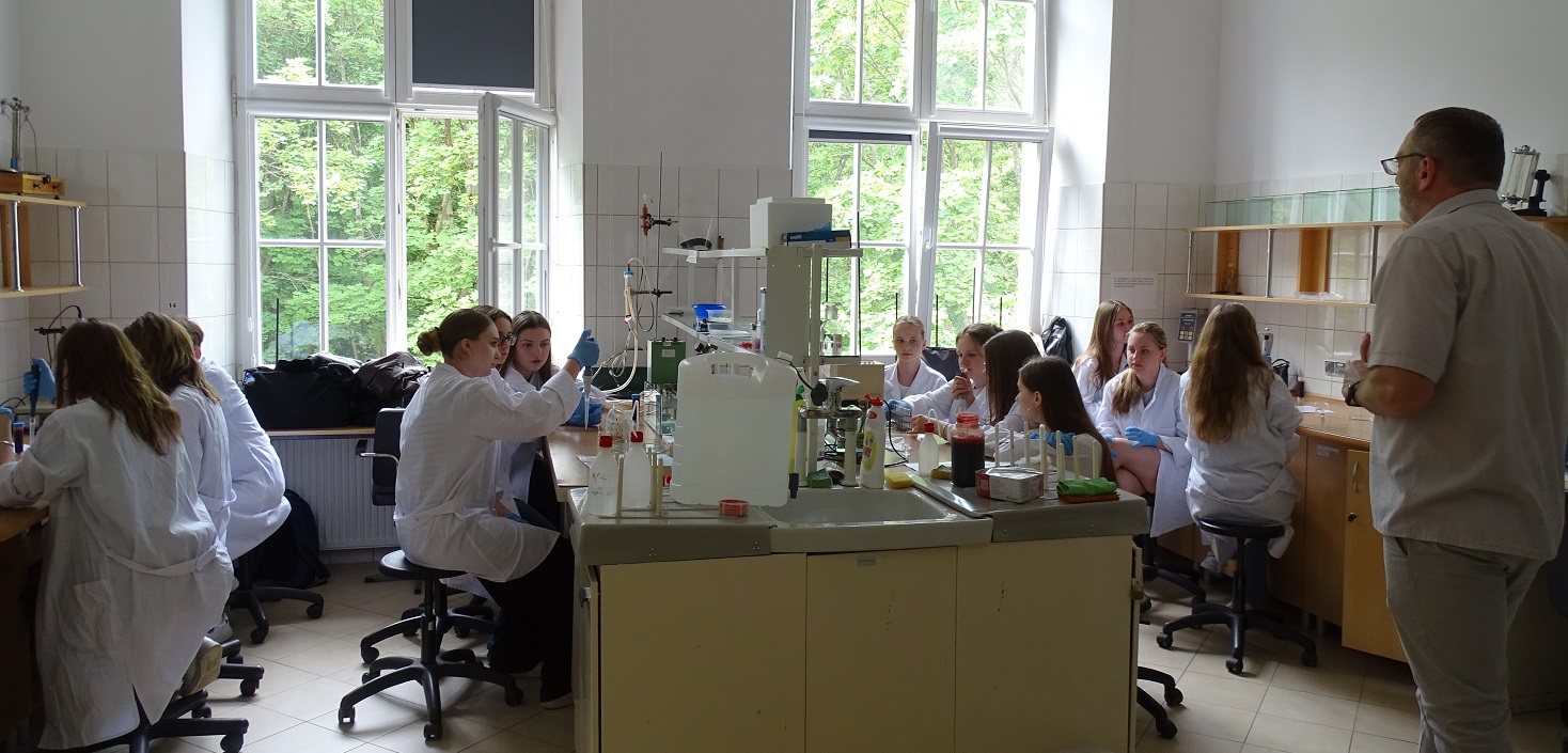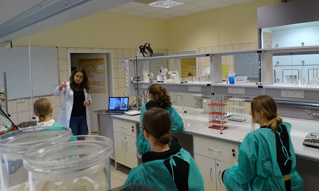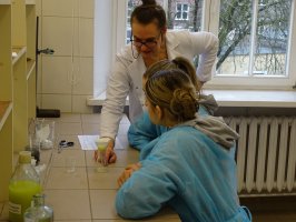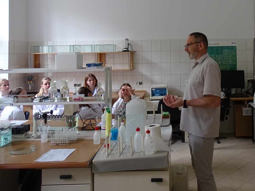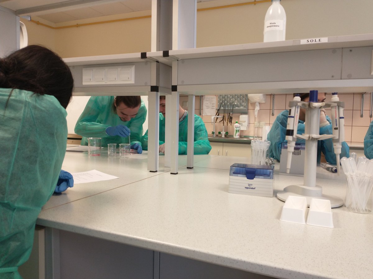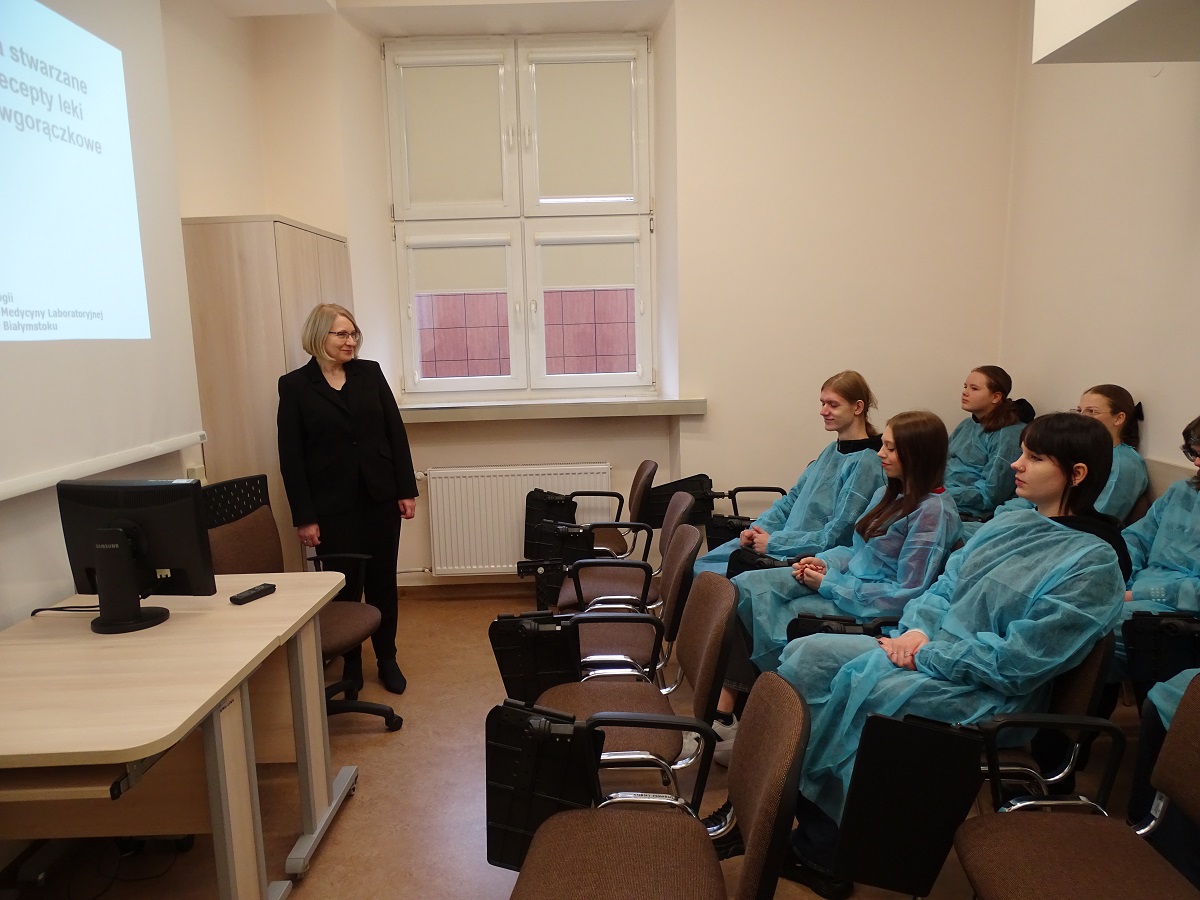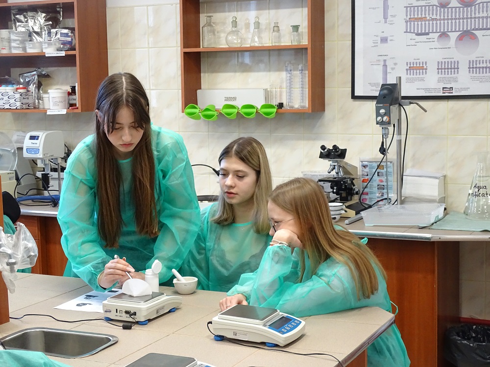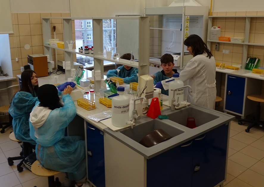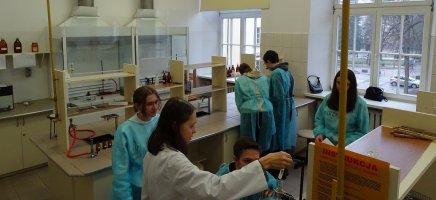 04 kwietnia br. uczniowie z Liceum Ogólnokształcąego im. Polaków i Polonii na Świecie w Augustowie uczestniczyli w warsztatach naukowych prowadzonych przez pracowników niniejszych Zakładów: w Zakładzie Chemii Nieorganicznej i Analitycznej " zajęcia na temat "Kompleksy w chemii i medycynie" prowadzili dr hab. Agnieszka Markowska, dr hab. Agnieszka Gęgotek, dr hab. Wojciech Łuczaj, dr Iwona Jarocka-Karpowicz, dr Michał Biernacki; w Zakładzie Analizy i Bioanalizy Leków zajęcia na temat "Porównanie zawartości żelaza w lekach, suplementach diety i preparatach nieznanego pochodzenia- problem leków zafałszowanych" prowadziła dr Wioleta Omeljaniuk"; w Zakładzie Syntezy i Technologii Środków Leczniczych zajęcia na temat " Synteza leków - nauka czy magia" prowadziła dr Anna Muszyńska.