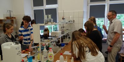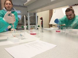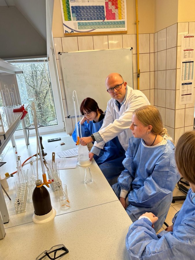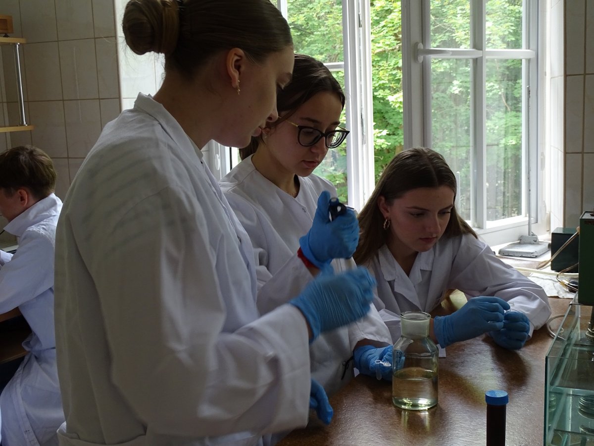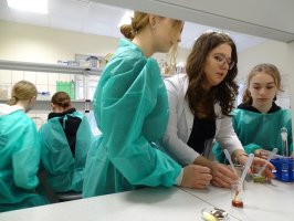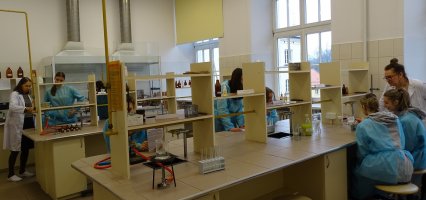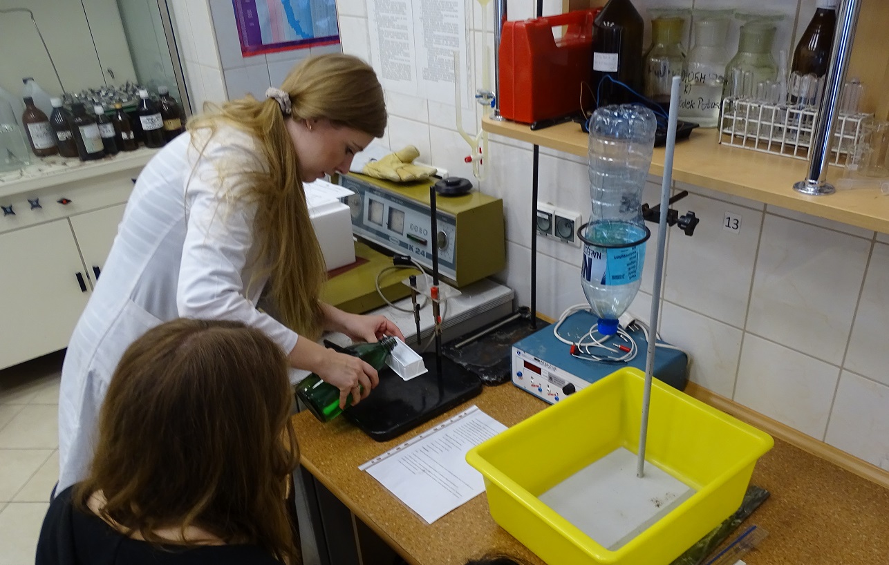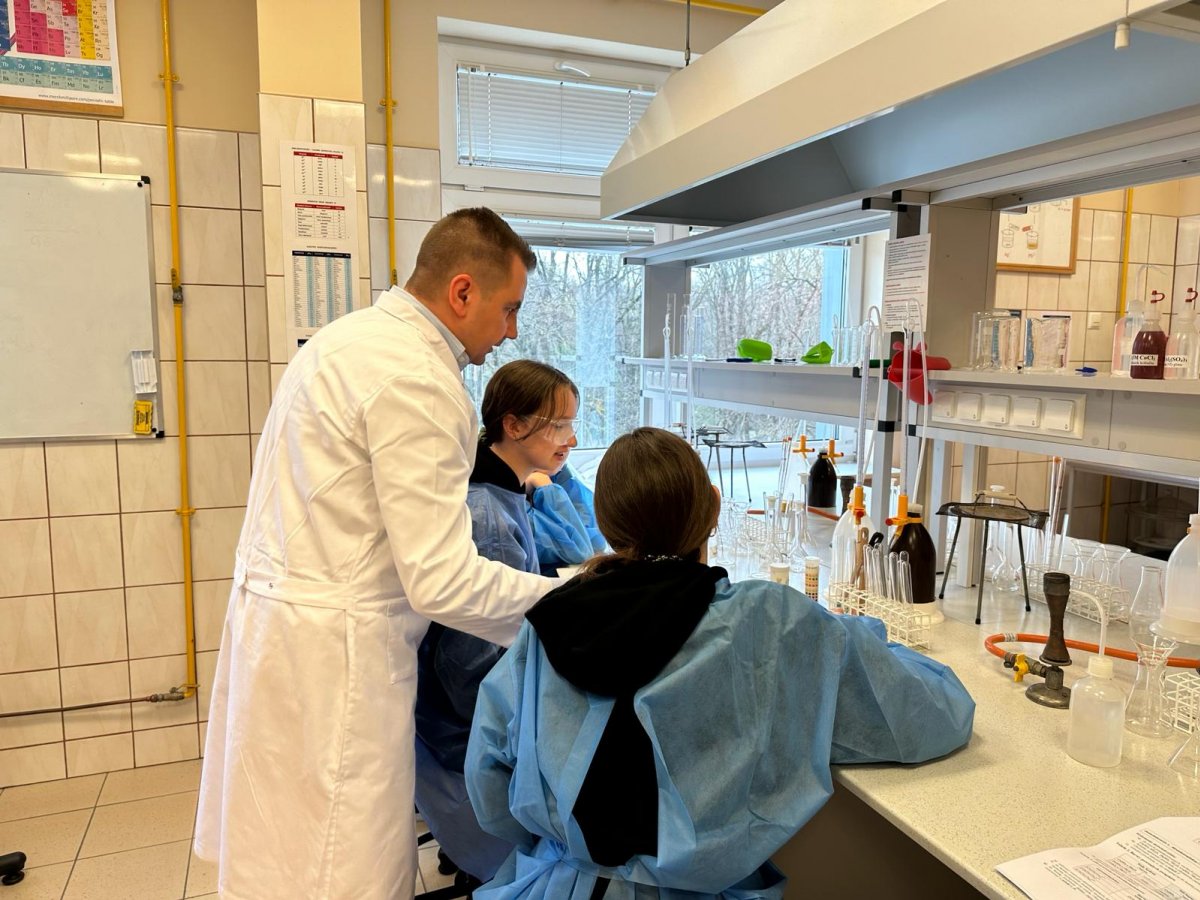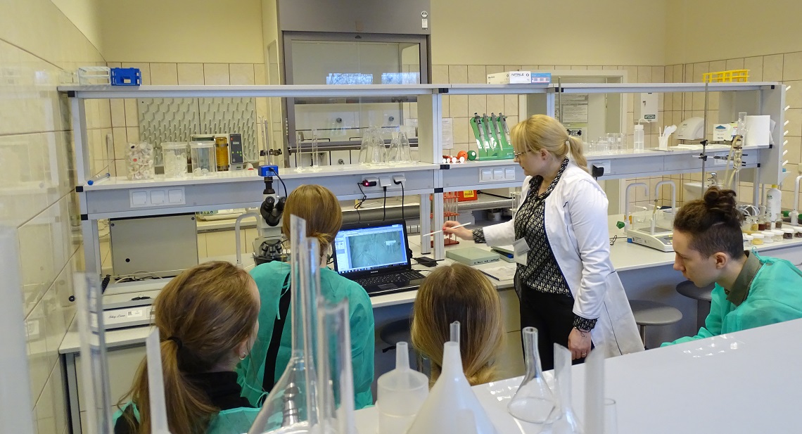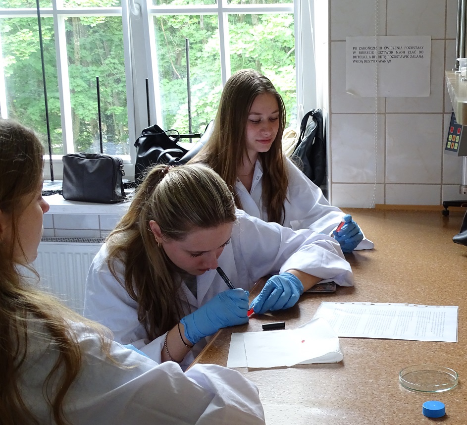 04 kwietnia br. uczniowie z Liceum Ogólnokształcąego im. Polaków i Polonii na Świecie w Augustowie uczestniczyli w warsztatach naukowych prowadzonych przez pracowników niniejszych Zakładów: w Zakładzie Chemii Nieorganicznej i Analitycznej " zajęcia na temat "Kompleksy w chemii i medycynie" prowadzili dr hab. Agnieszka Markowska, dr hab. Agnieszka Gęgotek, dr hab. Wojciech Łuczaj, dr Iwona Jarocka-Karpowicz, dr Michał Biernacki; w Zakładzie Analizy i Bioanalizy Leków zajęcia na temat "Porównanie zawartości żelaza w lekach, suplementach diety i preparatach nieznanego pochodzenia- problem leków zafałszowanych" prowadziła dr Wioleta Omeljaniuk"; w Zakładzie Syntezy i Technologii Środków Leczniczych zajęcia na temat " Synteza leków - nauka czy magia" prowadziła dr Anna Muszyńska.
