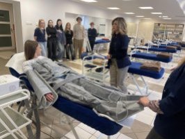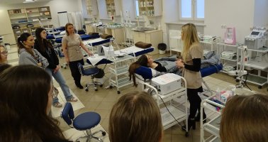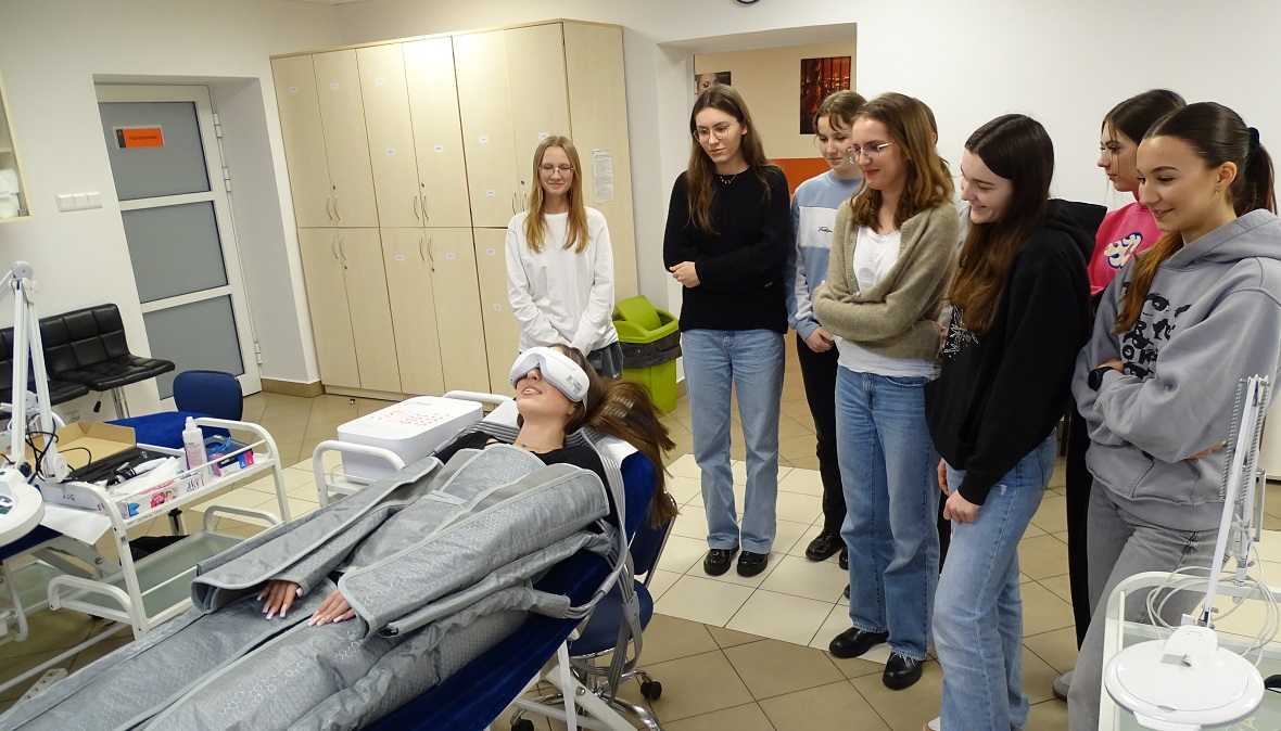 - w Samodzielnej Pracowni Kosmetologii główną rolę odegrała "Fizyka w Gabinecie kosmetycznym". Zajęcia przeprowadziły dr Natalia Matwiejczyk i mgr Marta Łotowska. Po zapoznaniu się z programem nauczania na kierunku Kosmetologia uczniowie przeszli do zajęć praktycznych. Mogli zbadać stan swojej skóry czy skorzystać z zabigu drenażu limfatycznego.