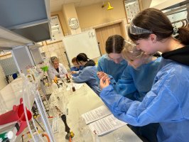 1 grudnia br. uczniowie z I Liceum Ogólnokształcącego w Suwałkach byli gośćmi na naszym Wydziale i brali czynny udział w warsztatach naukowych zorganizowanych przez: Zakład Farmakognozji, zajęcia pn:" Pachnące laboratorium" prowadził Kierownik Zakładu prof. dr hab Michał Tomczyk; Zakład Fizjologii i Patofizjologii Doświadczalnej, zajęcia pn:"Warsztaty z podstaw fizjologii człowieka" prowadził dr n. farm. Patryk Remiszewski.