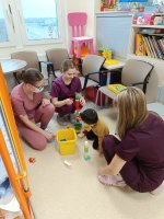 Hospitalizacja dziecka jest niewątpliwie trudną sytuacją, zarówno dla małego pacjenta jak i jego opiekunów. Jesteśmy przekonani o konieczności holistycznego podejścia do pacjenta, a więc również zadbania o jego komfort psychiczny w tej trudnej sytuacji. „Czytanie bajek” to inicjatywa zapoczątkowana przez Studenckie Koło Naukowe „Ad liberos” działające przy Zakładzie Medycyny Wieku Rozwojowego i Pielęgniarstwa Pediatrycznego Uniwersytetu Medycznego w Białymstoku. Od marca 2024 roku studenci zachowując zasady higieny i przestrzegając zasad reżimu sanitarnego czytają bajki małym pacjentom. Takie działania, naszym zdaniem, redukują stres i przyczynią się do szybszego powrotu do zdrowia małych pacjentów. Mamy nadzieję, że w przyszłości do naszej inicjatywy dołączą kolejni wolontariusze którzy poświęcając swój czas sprawią, że na buziach małych pacjentów zagości uśmiech.