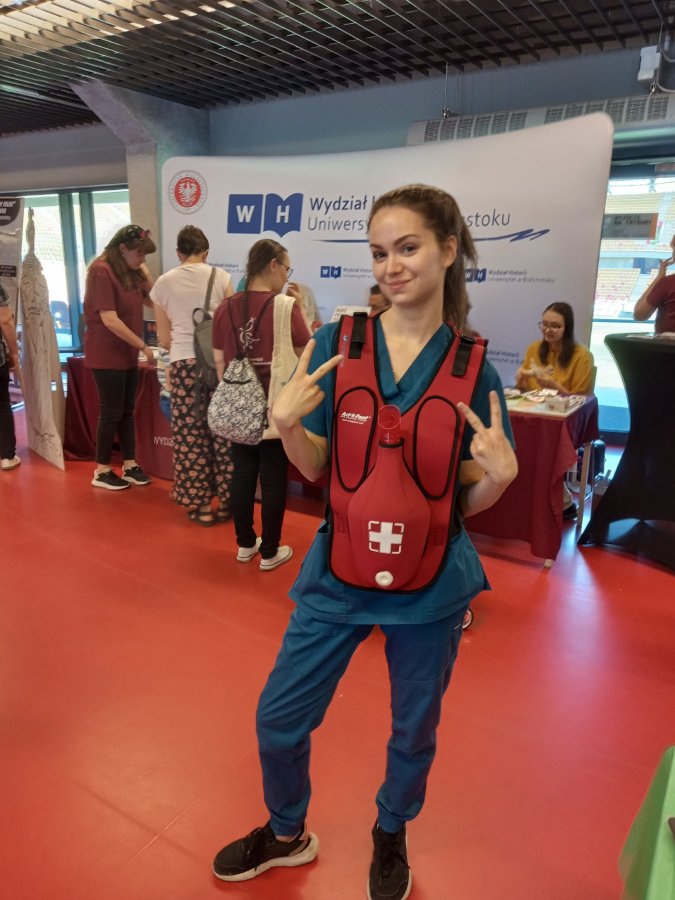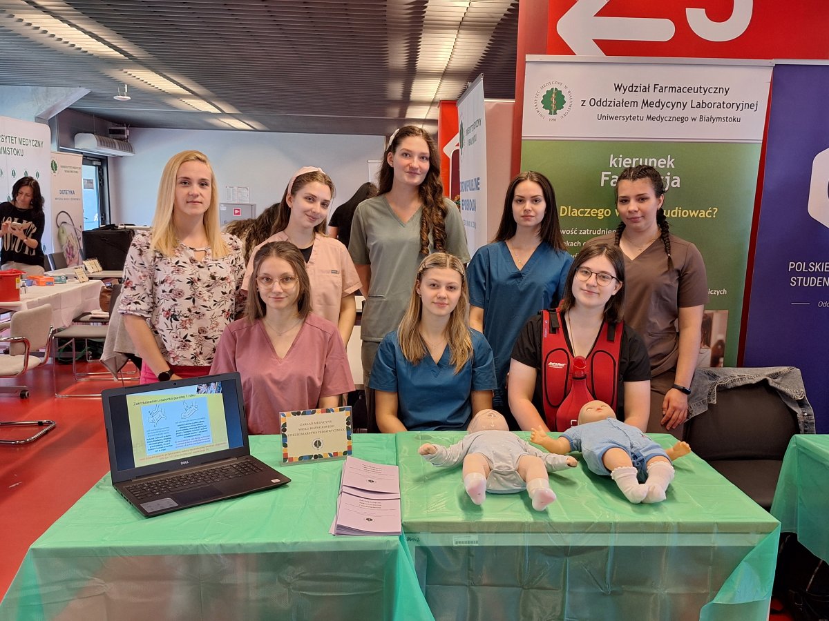 Dnia 18 maja 2024 r. na Stadionie Miejskim w Białymstoku odbył się Rodzinny Piknik Nauki i Sztuki z udziałem SKN „Ad Liberos”. W ramach pikniku przygotowaliśmy instrukcję pierwszej pomocy u niemowląt i dzieci w sytuacjach zachłyśnięcia, zakrztuszenia i zadławienia. Prowadziliśmy praktyczne warsztaty z udziałem całych rodzin, młodzieży i seniorów, w ramach których omawialiśmy różnice pomiędzy zadławieniem a zakrztuszeniem oraz jak je odróżnić. Dodatkowo pokazywaliśmy, jak postępować przy zadławieniu niemowlęcia (do 1 roku życia) a jak w przypadku dziecka starszego. Zainteresowanie tematem było ogromne, mamy nadzieję że w przyszłym roku spotkamy się na kolejnym rodzinnym pikniku w większym gronie niż tym razem.