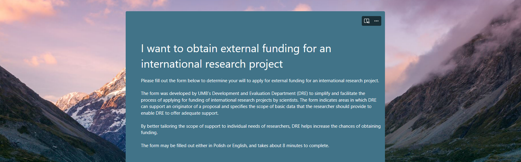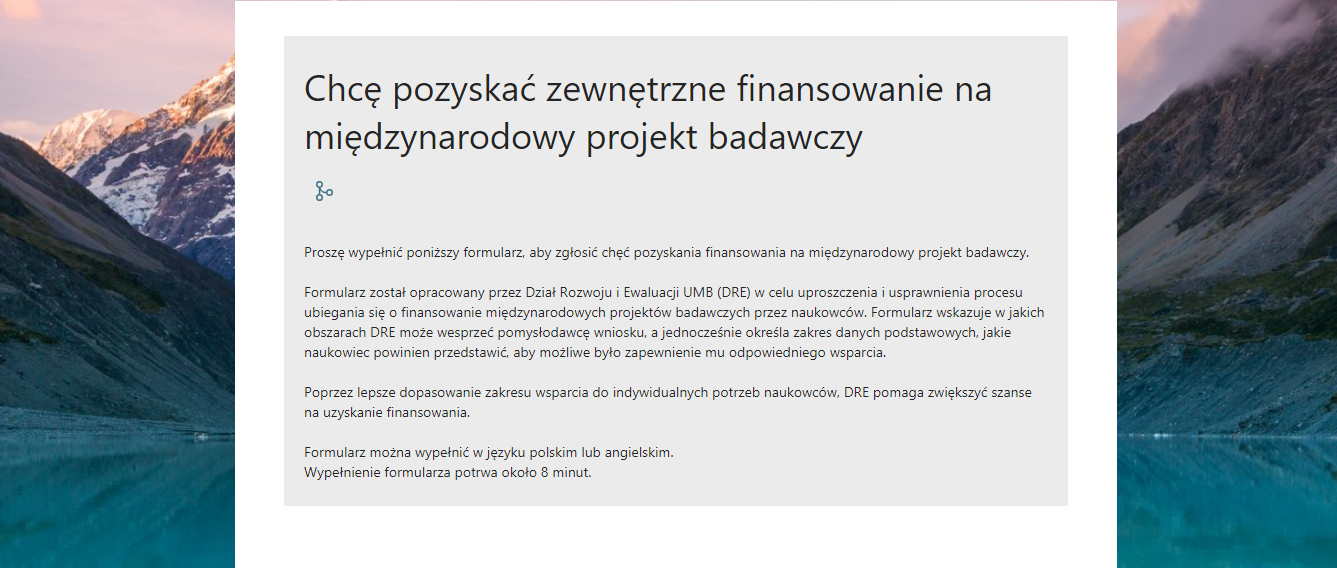 Proszę wypełnić poniższy formularz, aby zgłosić chęć pozyskania zewnętrznego finansowania na międzynarodowy projekt badawczy: