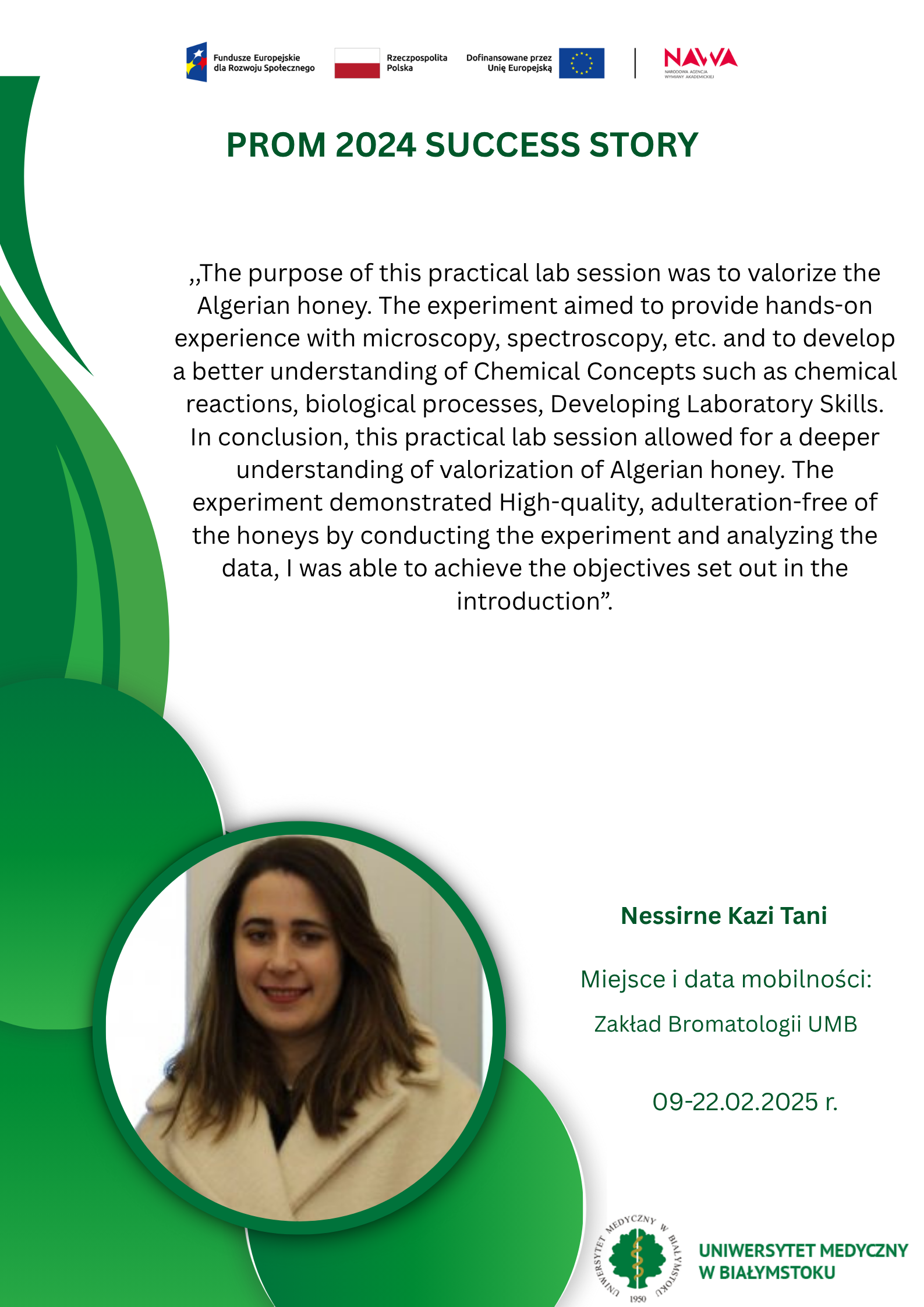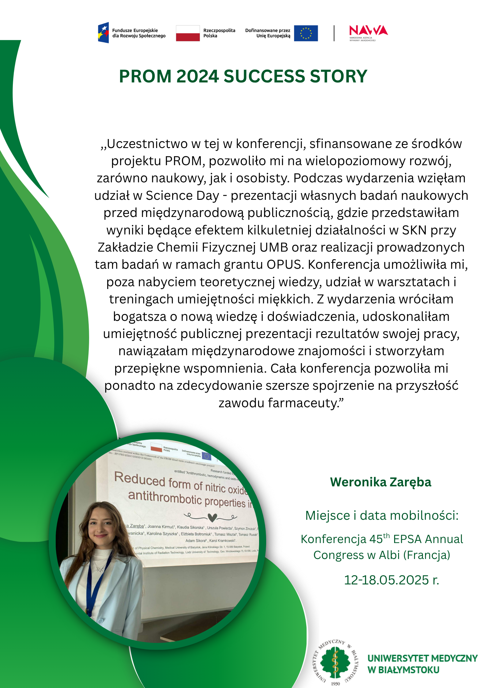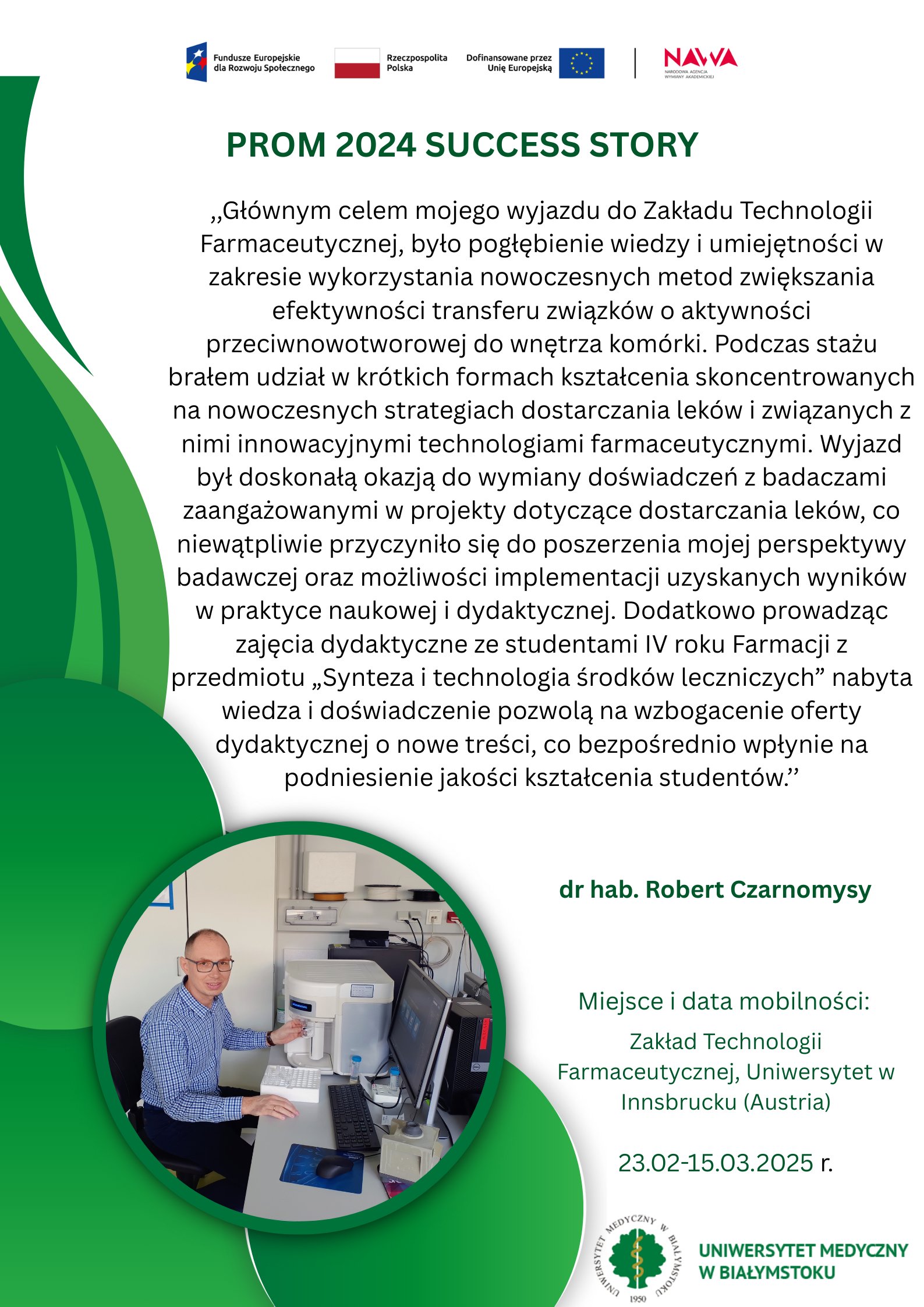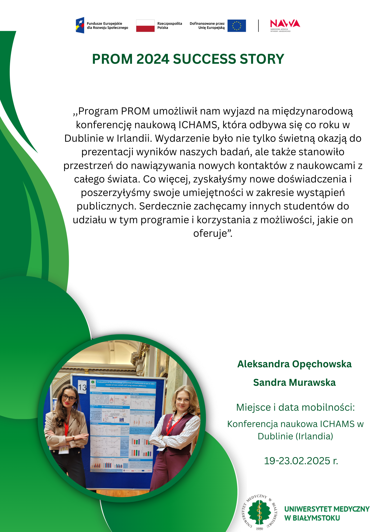 Program PROM – krótkookresowa wymiana akademicka jest finansowany ze środków Unii Europejskiej w ramach projektu pn. „Krótkookresowa wymiana akademicka sposobem na podniesienie jakości kształcenia w instytucjach szkolnictwa wyższego i nauki” o numerze FERS.01.05-IP.08-0218/23.