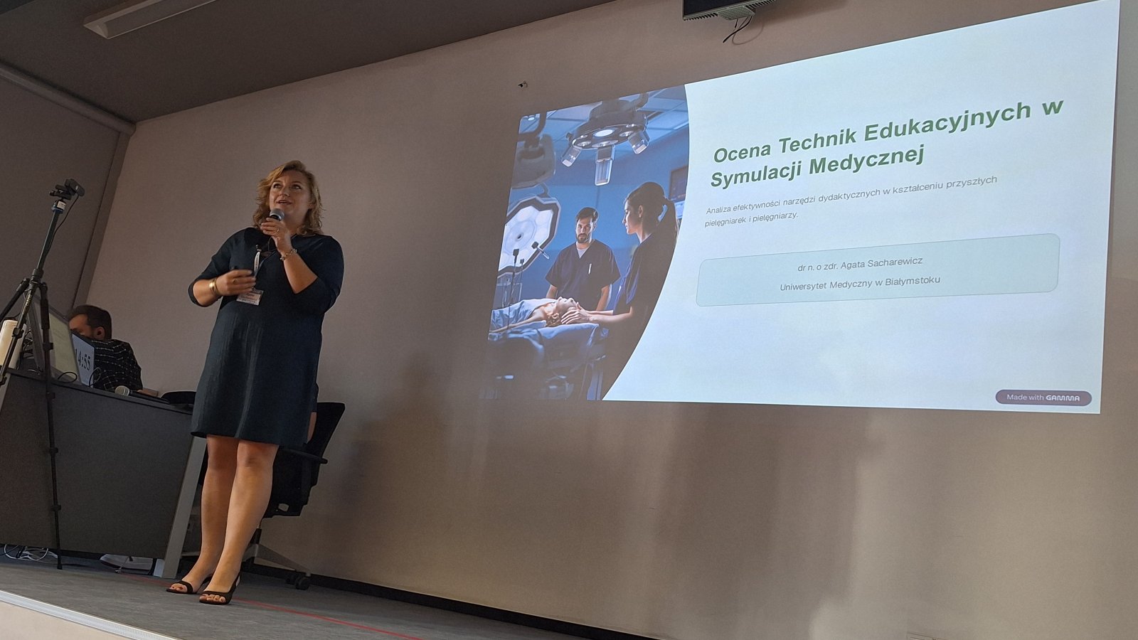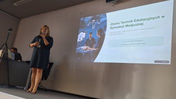 - Agata Sacharewicz przedstawiła wystąpienie pt.: Ocena praktyk edukacyjnych stosowanych w symulacji medycznej – analiza ważności i realizacji z perspektywy studentów.