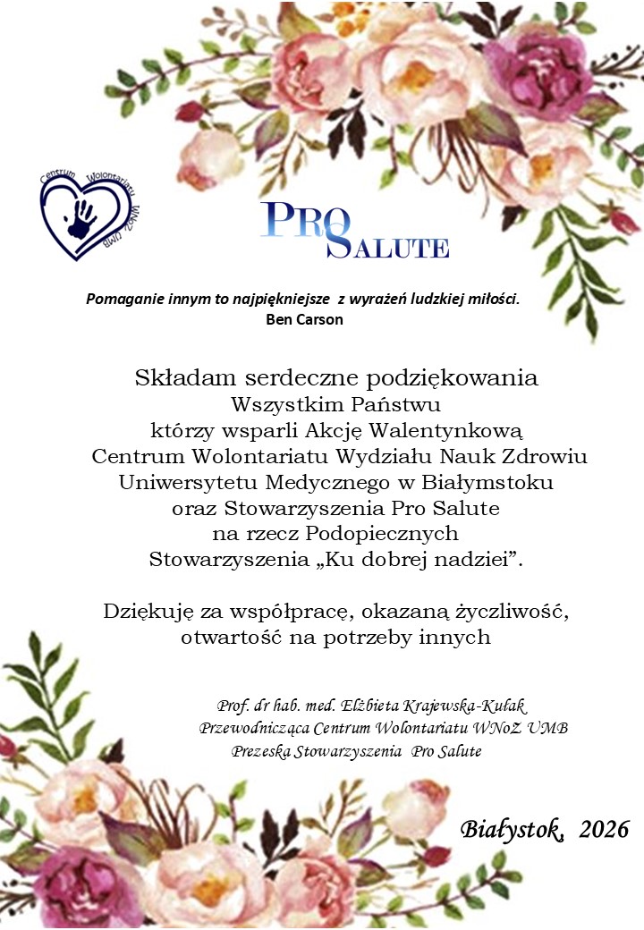 Uniwersytet Medyczny w Białymstoku. Walentynkowa Akcja Charytatywna.