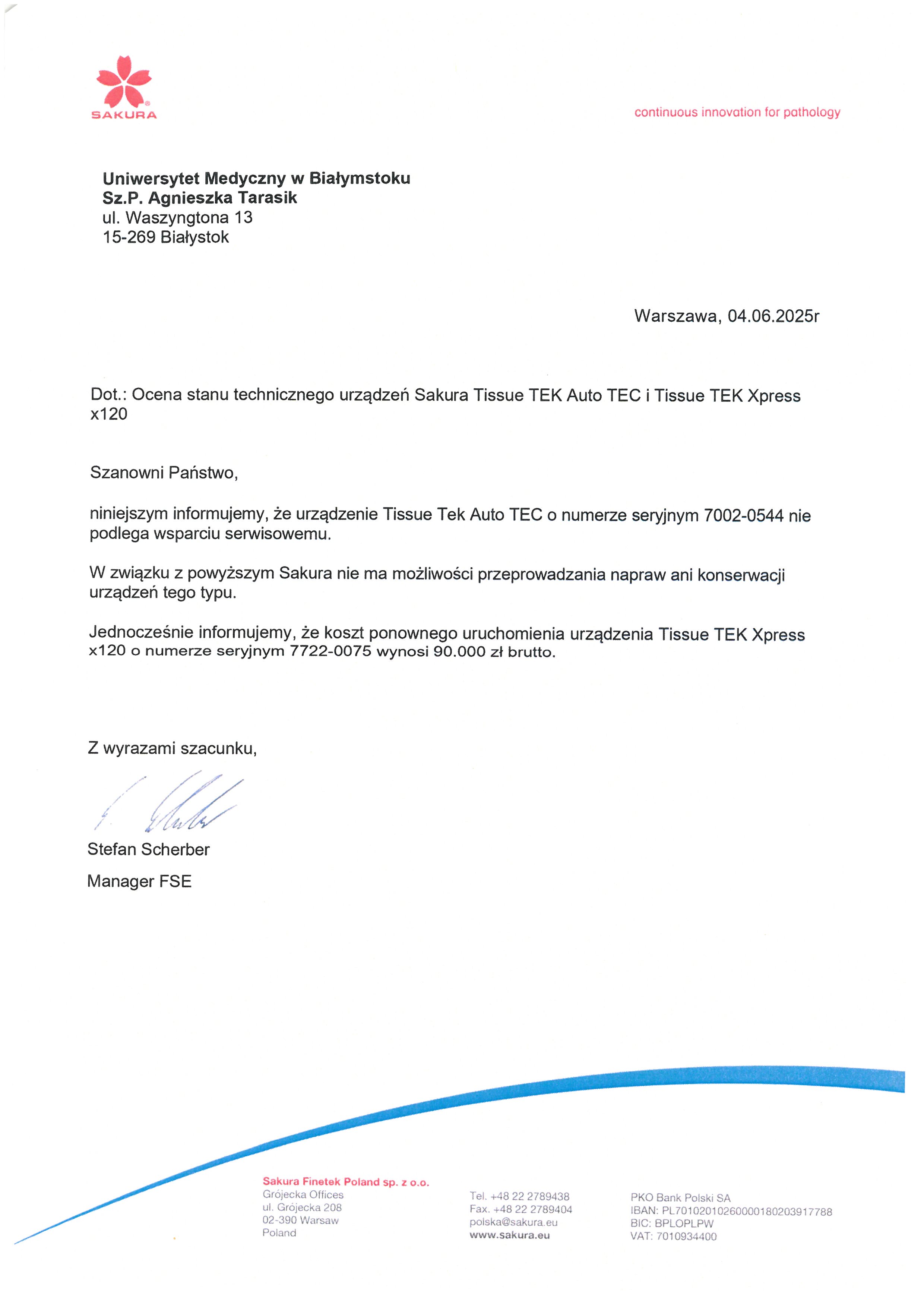 - Uniwersytet Medyczny w Białymstoku nie odpowiada za wady ukryte sprzedawanego środka trwałego.