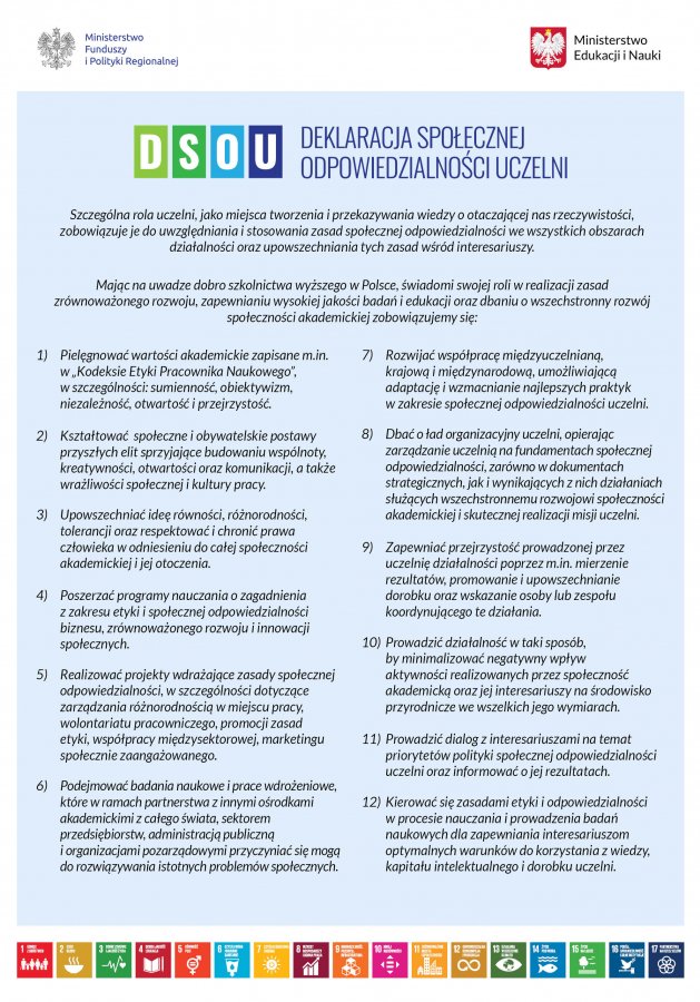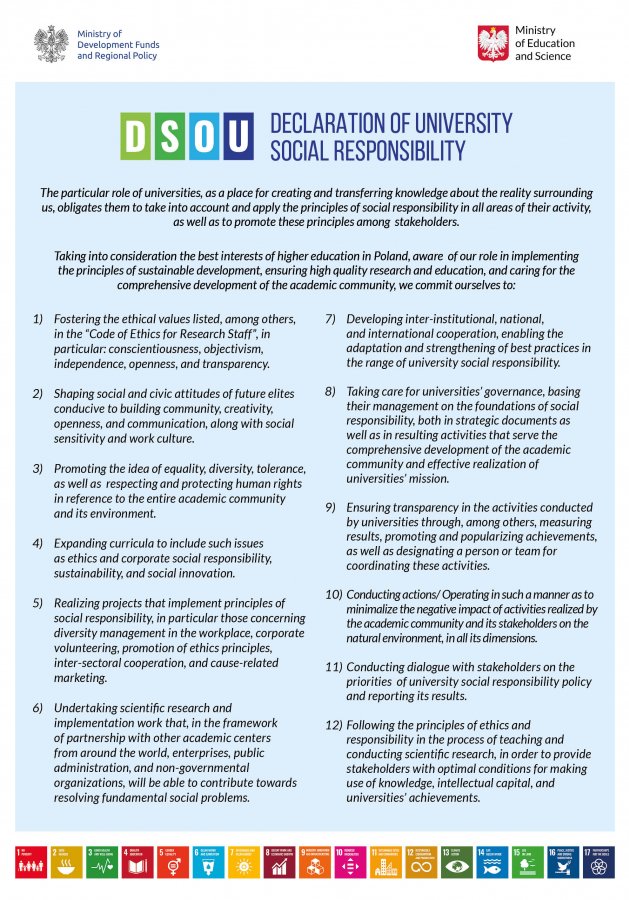 Deklaracja Spolecznej Odpowiedzialnosci UczelniDeclaration of University Social ResponsibilityLogotypy Deklaracji SOUSygnatariusze Deklaracji SOU