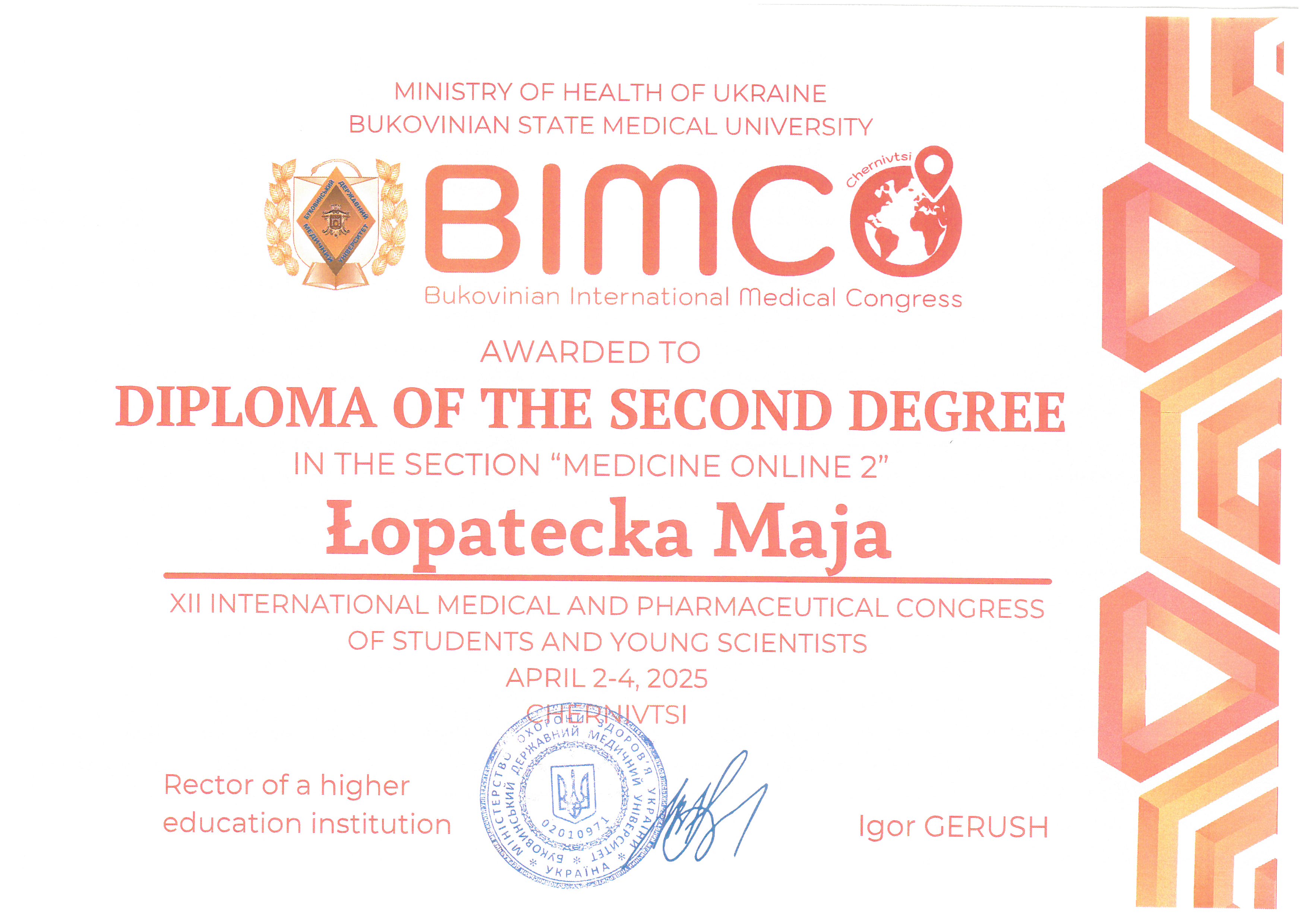 XII International Medical and Pharmaceutical Congress of Students and Young Scientists, Bukovinian International Medical Congress 2025; BIMCO 2025