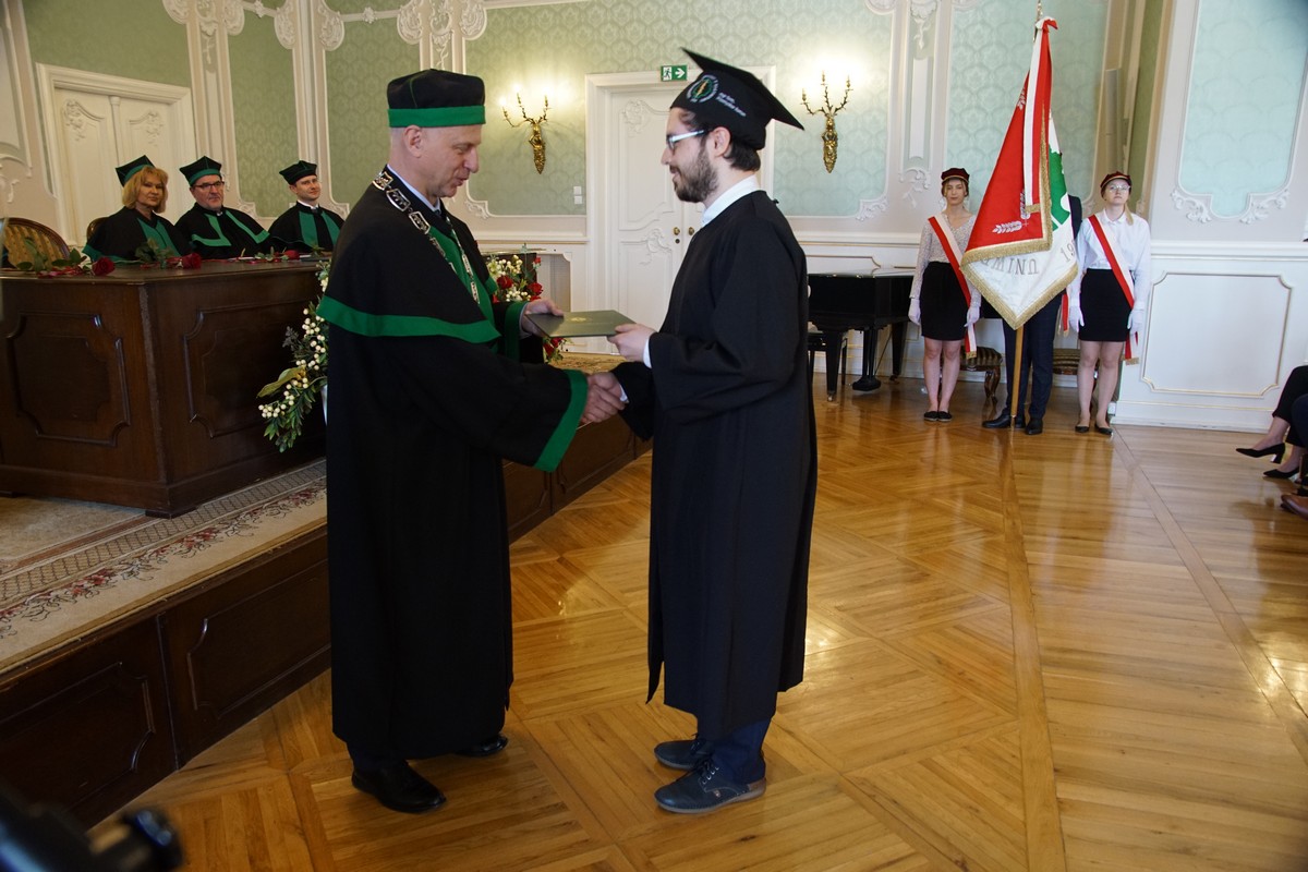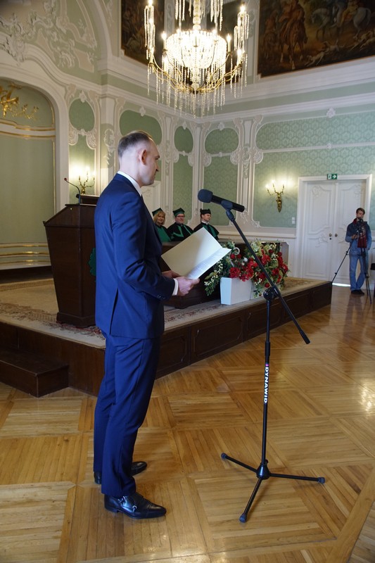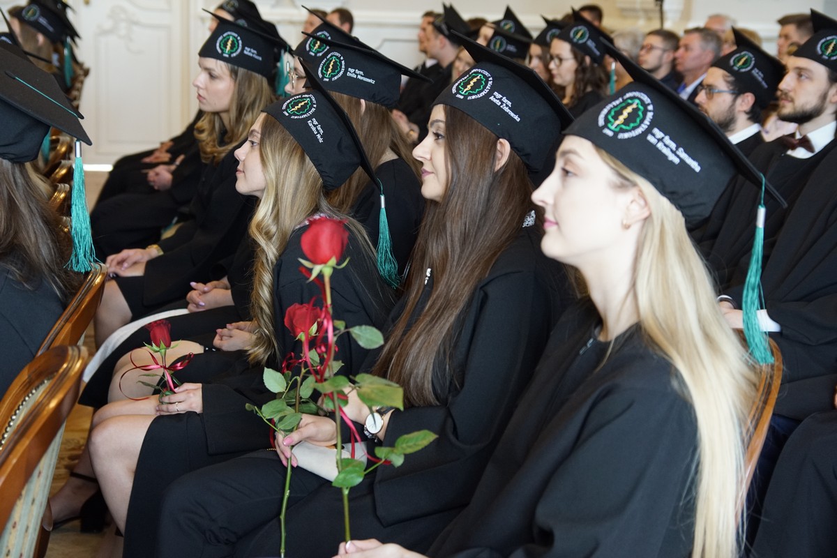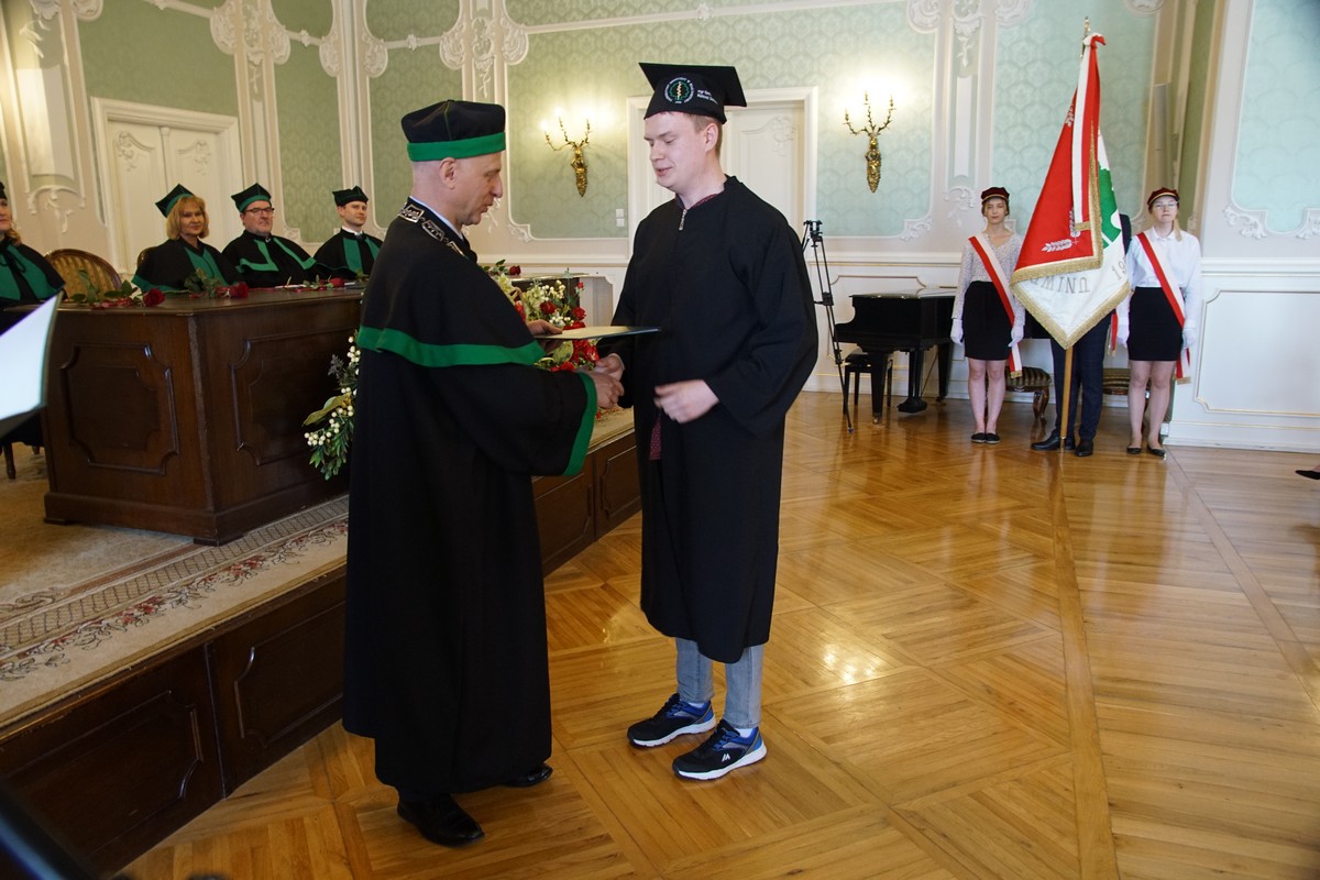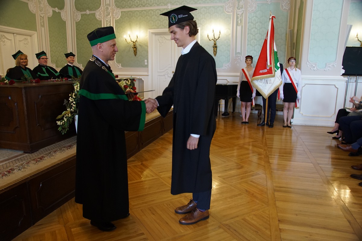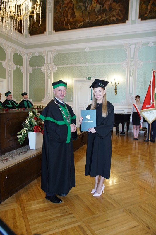 Po przyrzeczeniu i wystąpieniu Chóru Dziekan, prof. dr hab. Wojciech Miltyk wraz z Prodziekan ds. Studenckich – dr hab. Anną Gromotowicz-Popławską imiennie gratulowali każdemu z wyczytywanych absolwentów i wręczyli dyplomy.