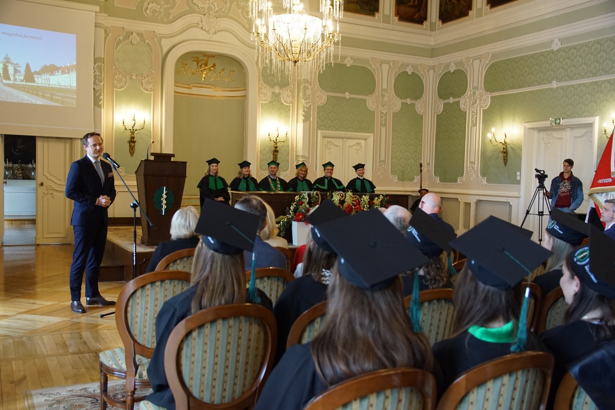 3 czerwca 2022 roku, w Aula Magna uroczyście odebrali dyplomy. Zwracając się do byłych studentów Dziekan Wydziału Farmaceutycznego z Oddziałem Medycyny Laboratoryjnej UMB, prof. dr hab. Wojciech Miltyk podziękował im za lata trudu oraz życzył powodzenia na nowym etapie życia. „Dziękuję Państwu za współpracę przez 5 lat. Gratuluję serdecznie otrzymania dyplomu najtrudniejszego kierunku jakim jest farmacja. Życzę Państwu wszelkiej pomyślności zawodowej i osobistej oraz wysokich zarobków. Vivat rocznik absolwentów farmacji 2022!” – powiedział Dziekan.