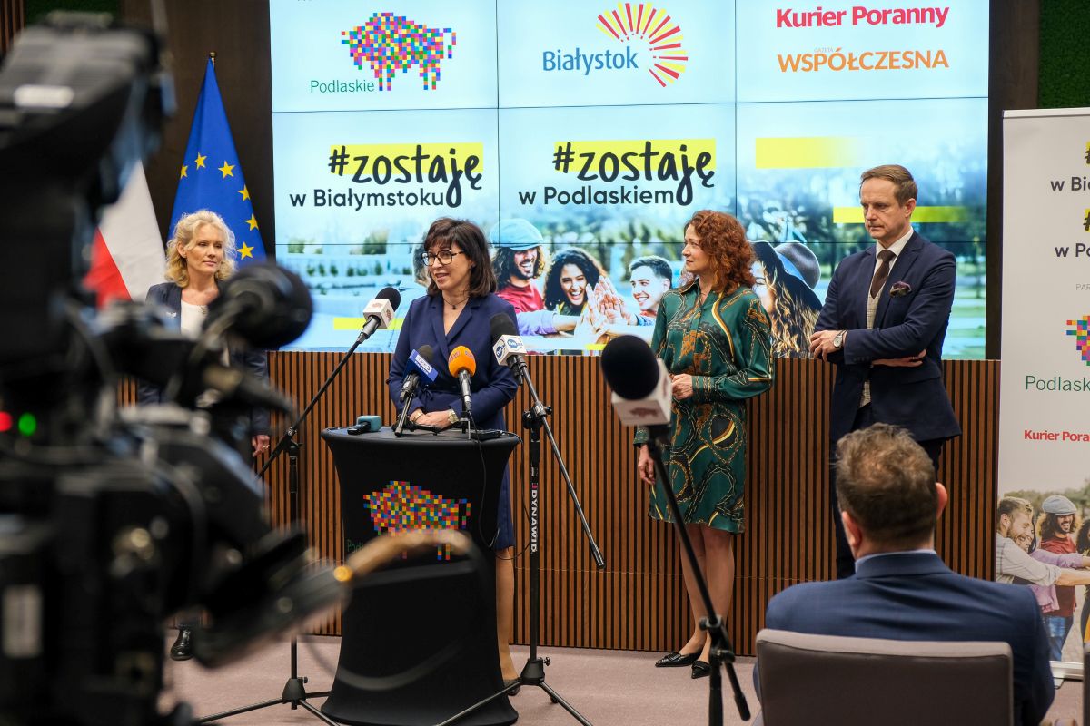 Kampanię pod hasłem „Zostaję w Białymstoku, zostaję w Podlaskiem” zainaugurowano dzisiaj podczas specjalnej konferencji prasowej w Urzędzie Marszałkowskim Województwa Podlaskiego. Kampanię organizują Kurier Poranny i Gazeta Współczesna. Partnerami strategicznymi są samorządy: województwa oraz miasta Białegostoku. W kampanii udział biorą także Uniwersytet Medyczny w Białymstoku, Politechnika Białostocka, Wschodnioeuropejska Akademia Nauk Stosowanych oraz Wyższa Szkoła Ekonomiczna.