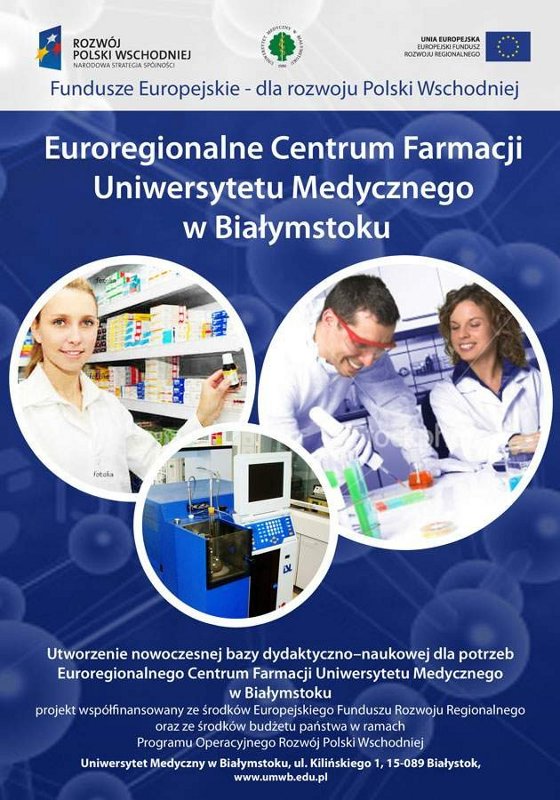 W dniu 28 lipca 2009 r. podpisana została umowa na dofinansowanie projektu pn. Utworzenie nowoczesnej bazy dydaktyczno - naukowej dla potrzeb Euroregionalnego Centrum Farmacji Uniwersytetu Medycznego w Białymstoku. Stronami umowy są: Polska Agencja Rozwoju Przedsiębiorczości - Instytucja Pośrednicząca oraz Uniwersytet Medyczny