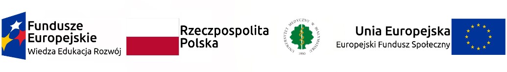 Projekt współfinansowany przez Unię Europejską ze środków Europejskiego Funduszu Społecznego w ramach Programu Operacyjnego Wiedza Edukacja Rozwój 2014-2020, Priorytet III. Szkolnictwo wyższe dla gospodarki i rozwoju, Działanie 3.1 Kompetencje w szkolnictwie wyższym.