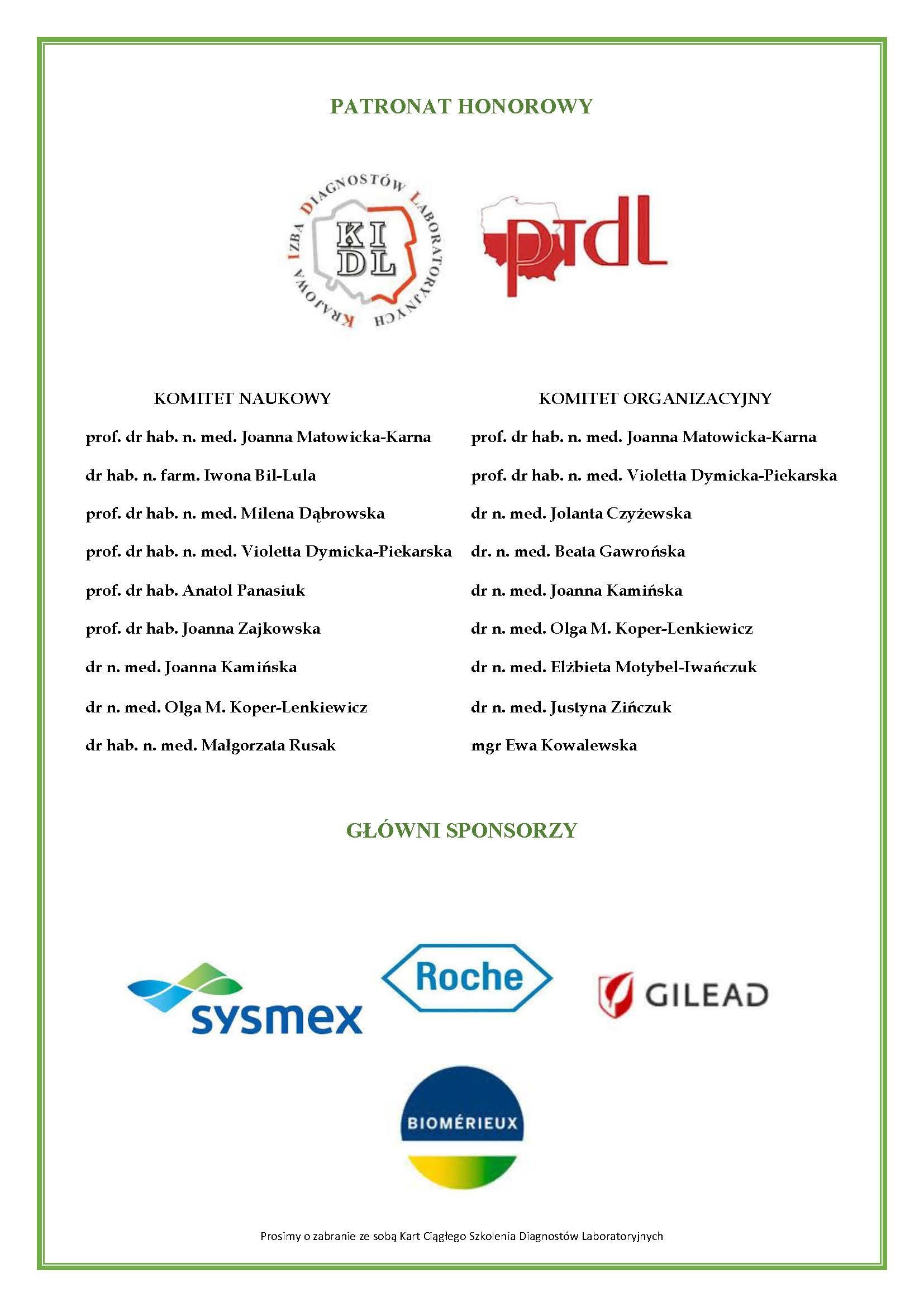 | Komitet Naukowy: Przewodniczący: prof. dr hab. n. med. Mirosław Czuczwar prof. dr hab. n. med. Katarzyna Dzierżanowska-Fangrat prof. dr. hab. n. med. Elżbieta Tryniszewska prof. dr hab. n. med. Jadwiga Wójkowska–Mach dr hab. n. med. Piotr Wieczorek dr hab. n. med. Paweł Sacha dr n. med. Dorota Olszańska mgr Tadeusz Gadomski mgr Jadwiga Kopala dr n. med. Maria Szymankiewicz Komitet Organizacyjny: Przewodniczący: mgr Tadeusz Gadomski Członkowie: lek. med. Maciej Wojciechowski mgr Jolanta Żukowska mgr Bożena Dzikiewicz mgr Katarzyna Świderska mgr Wioletta Tyszkiewicz Mariola Sitkiewicz |