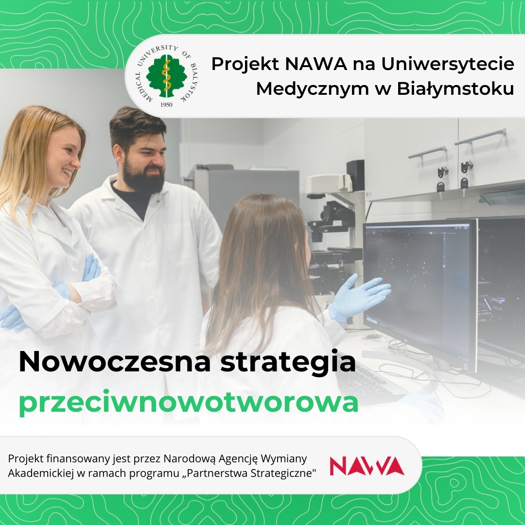 Uniwersytet Medyczny w Białymstoku realizuje projekt pn. „Przeciwciała monoklonalne w skojarzeniu z analogami tiazolidynonu jako nowoczesna strategia przeciwnowotworowa” w ramach programu Narodowej Agencji Wymiany Akademickiej pn. „Partnerstwa Strategiczne”.