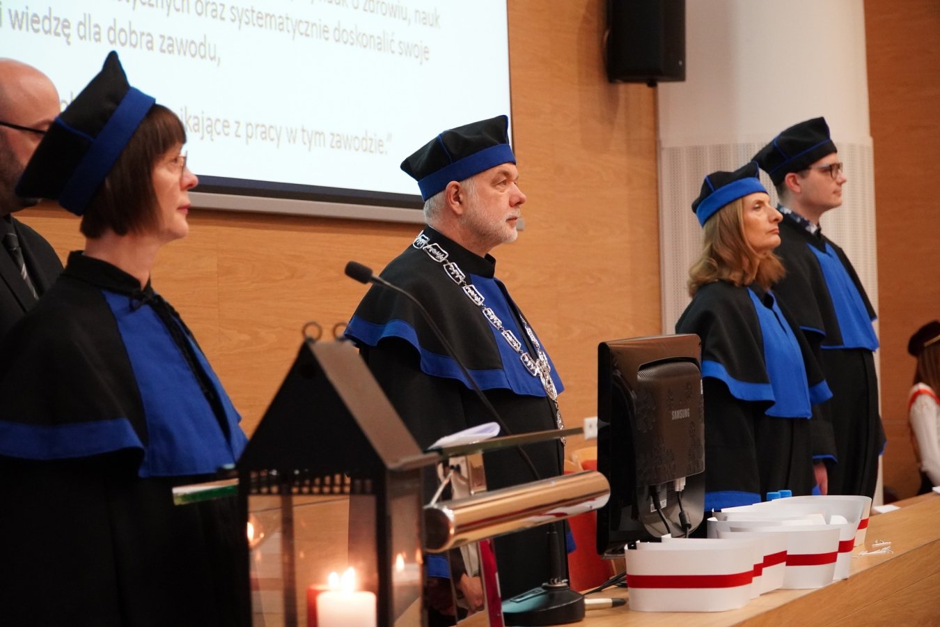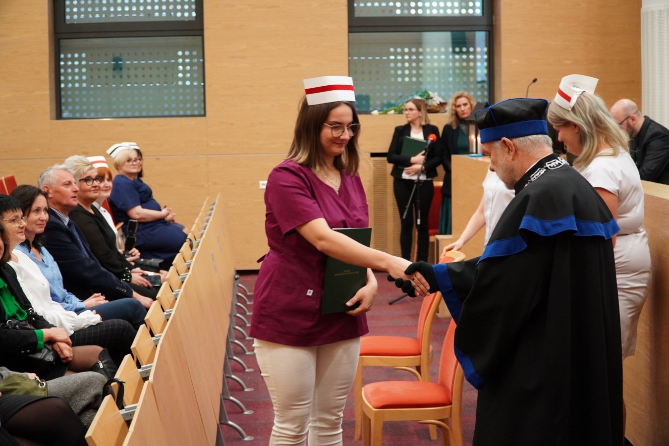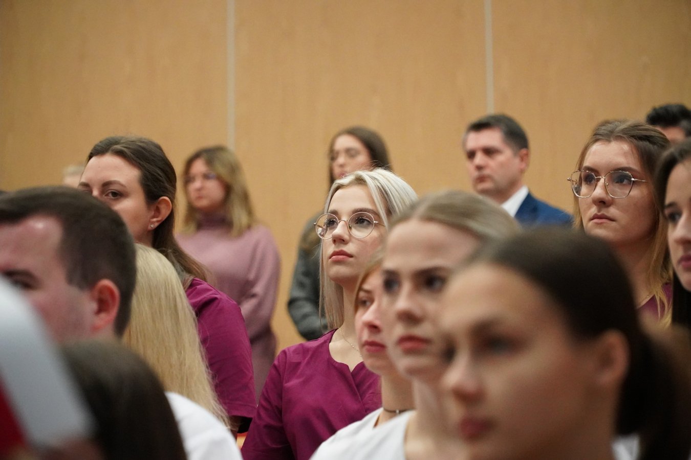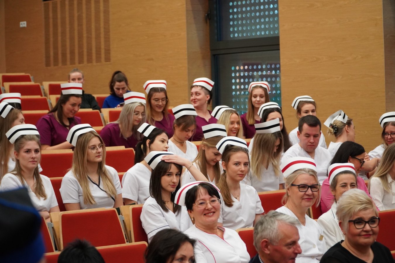 W uroczystości udział wzięli: prof. dr hab. Marcin Moniuszko, Prorektor ds. Nauki i Rozwoju i prof. dr hab. Adrian Chabowski, Prorektor ds. Kształcenia, przedstawiciele samorządu Pielęgniarek i Położnych, konsultanci wojewódzcy w dziedzinie pielęgniarstwa i położnictwa, a także Władze Dziekańskie Wydziału Nauk o Zdrowiu.