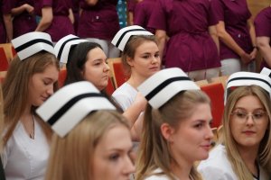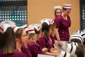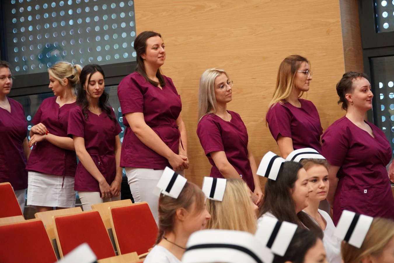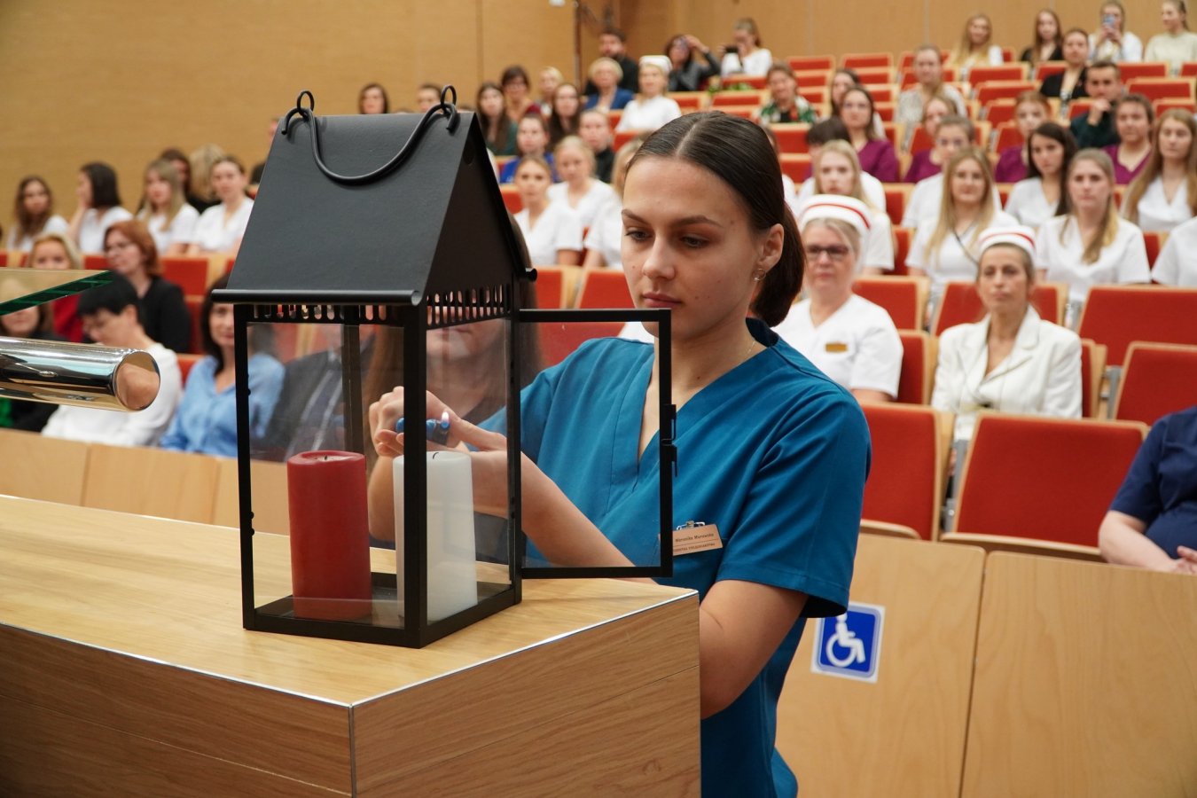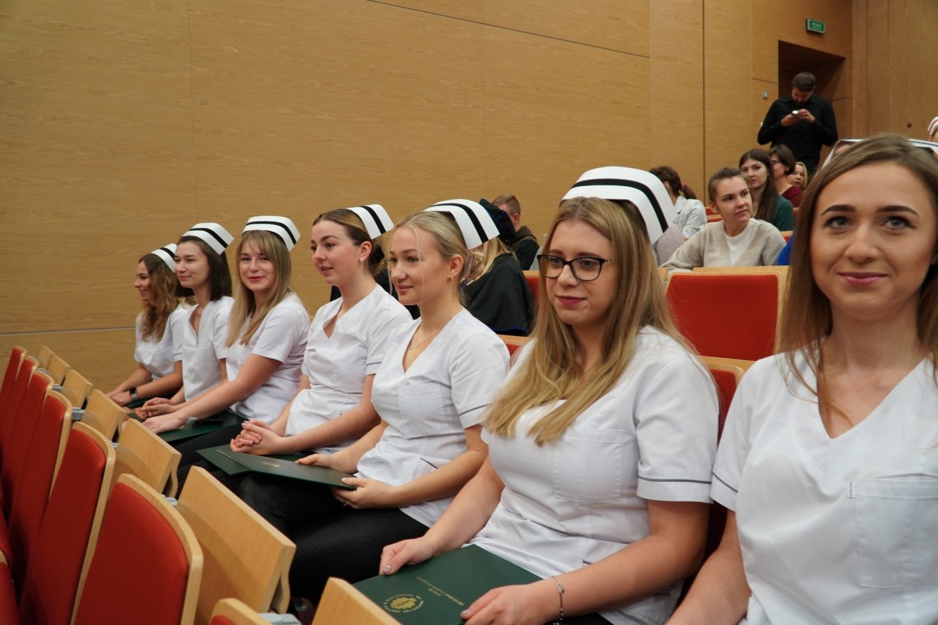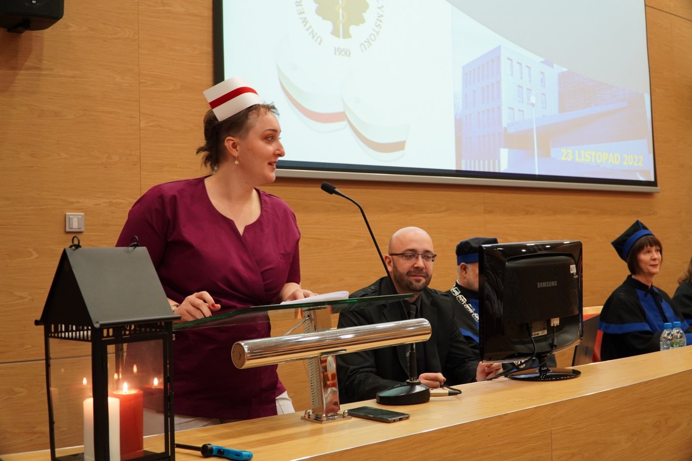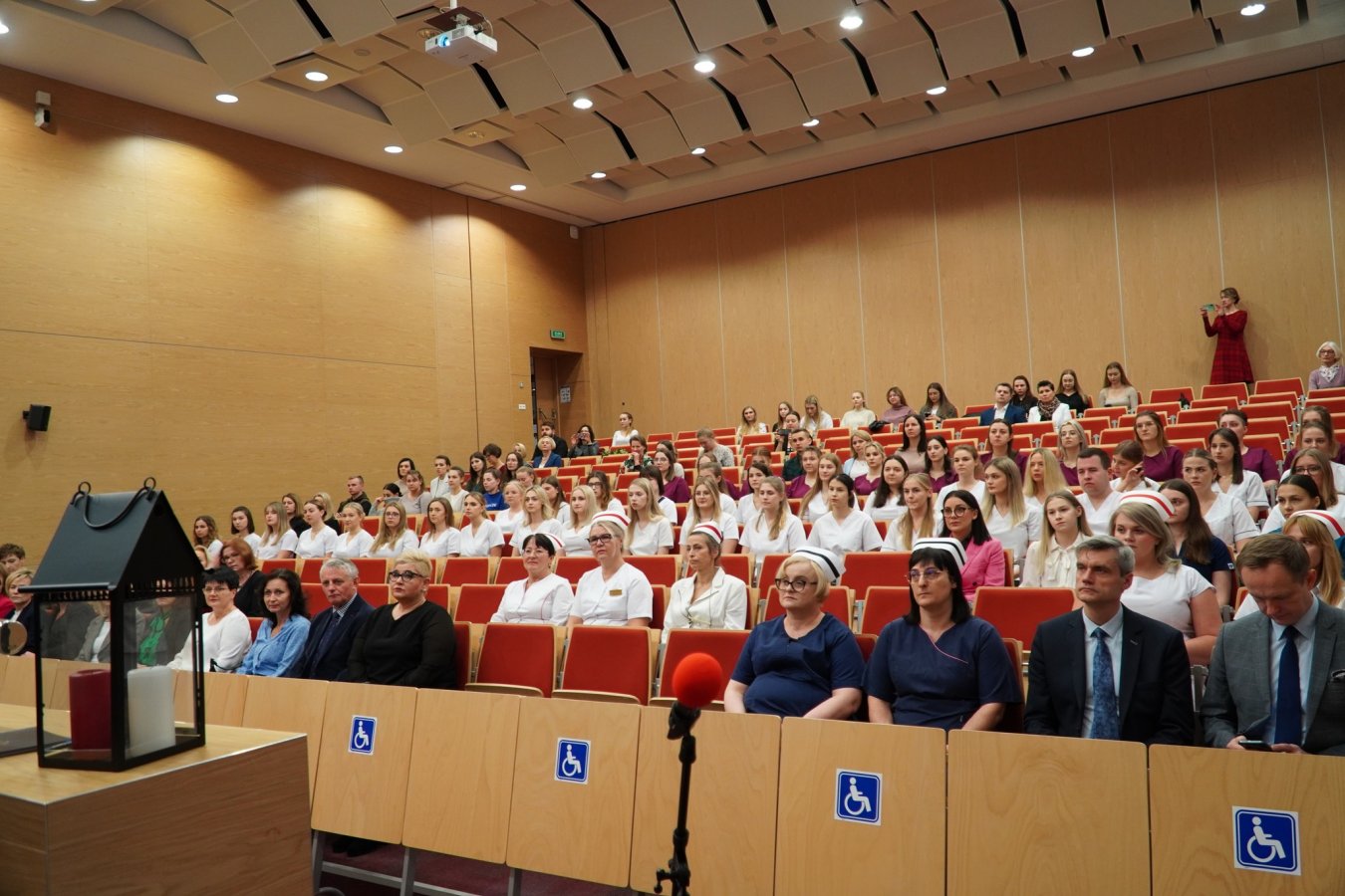 Podczas uroczystości absolwenci złożyli ślubowanie, w którym zobowiązali się do niesienia pomocy potrzebującym oraz trwania przy tradycjach zawodu. Usłyszeliśmy również Hymn Pielęgniarek, a studentki II roku zapaliły symboliczną lampkę Nightingale (międzynarodowy symbol pielęgniarek, towarzyszący największym uroczystościom zawodowym).