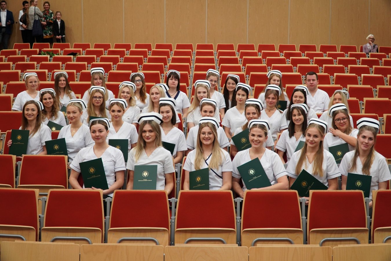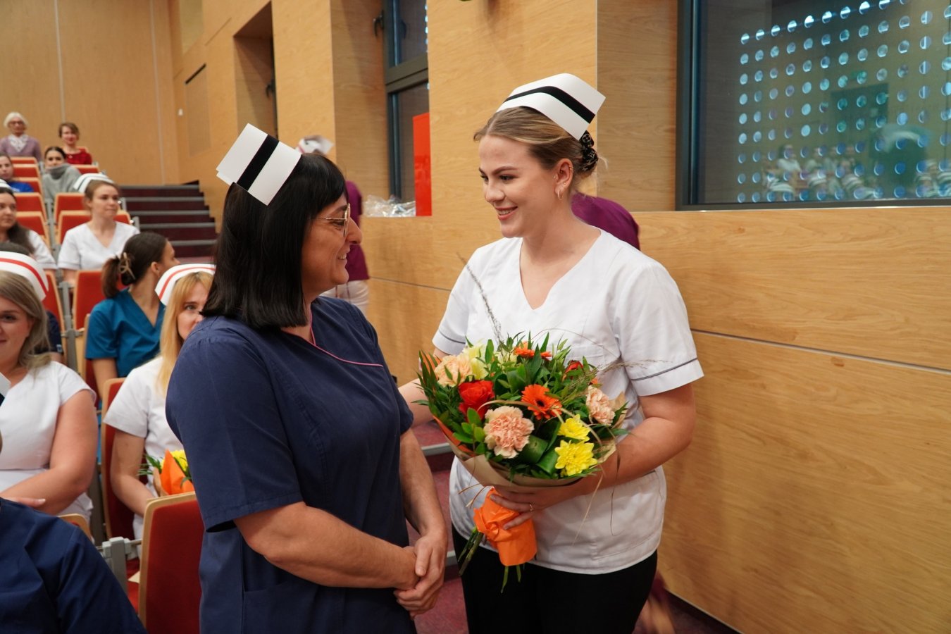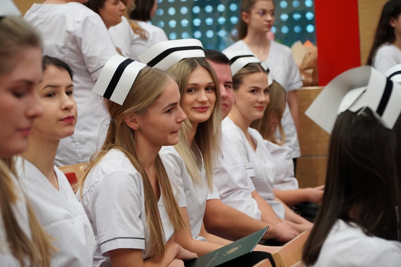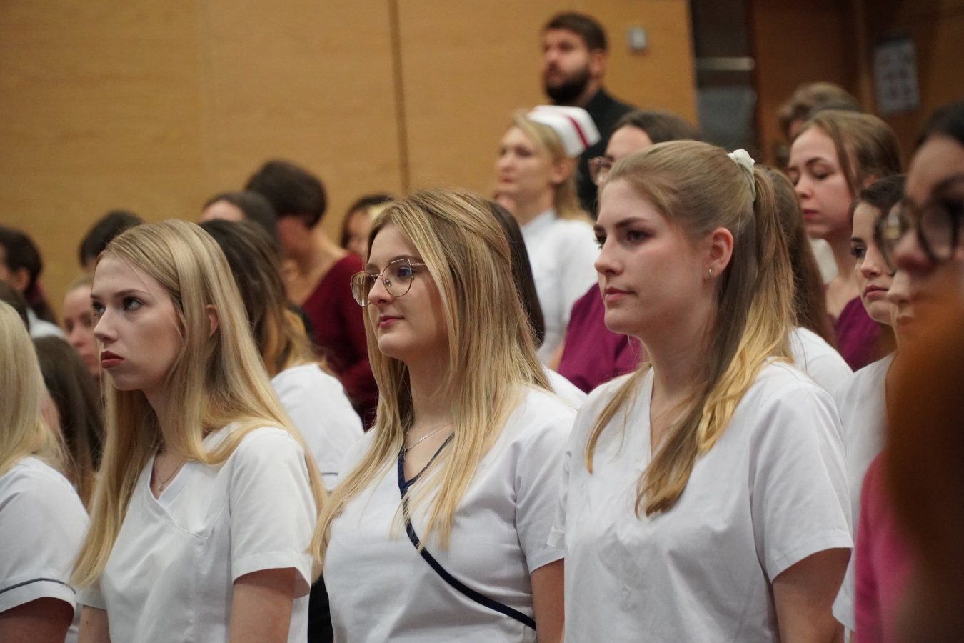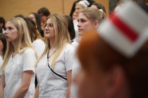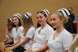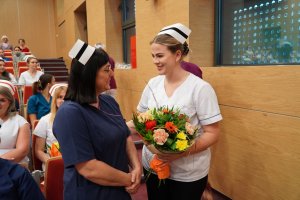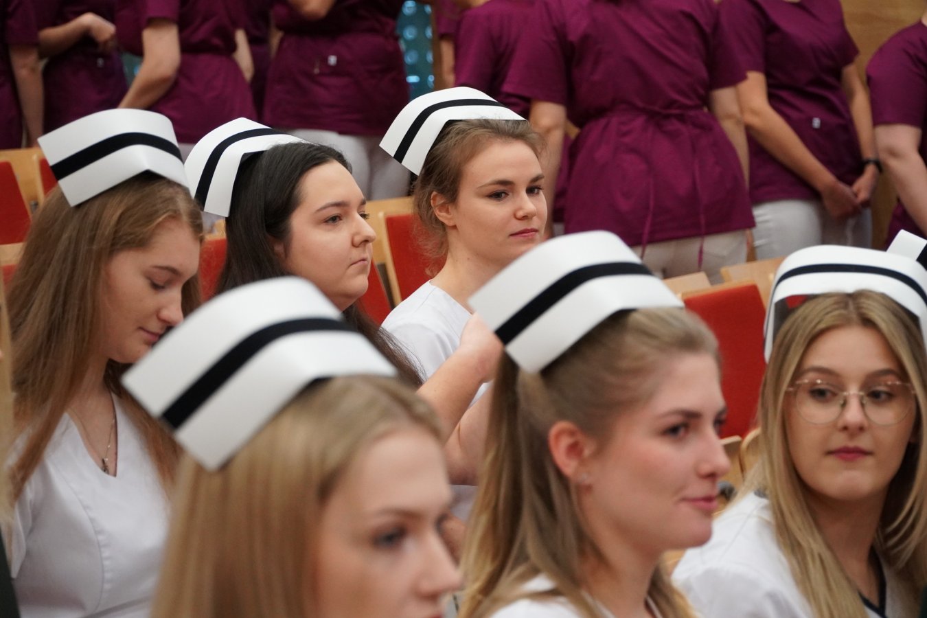 Podczas uroczystości absolwenci złożyli ślubowanie, w którym zobowiązali się do niesienia pomocy potrzebującym oraz trwania przy tradycjach zawodu. Usłyszeliśmy również Hymn Pielęgniarek, a studentki II roku zapaliły symboliczną lampkę Nightingale (międzynarodowy symbol pielęgniarek, towarzyszący największym uroczystościom zawodowym).