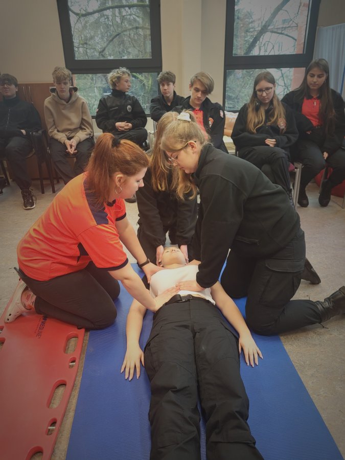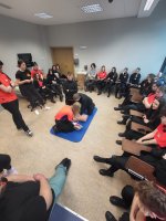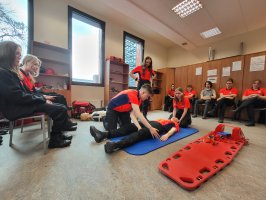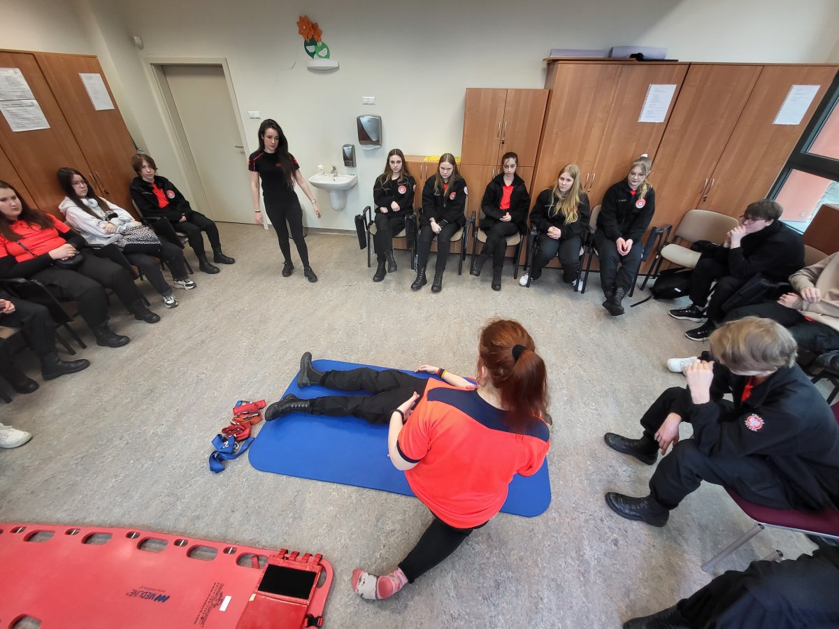Podczas zajęć przećwiczona została pierwsza pomoc oraz badanie urazowe i ewakuacja pacjenta z miejsca zdarzenia.