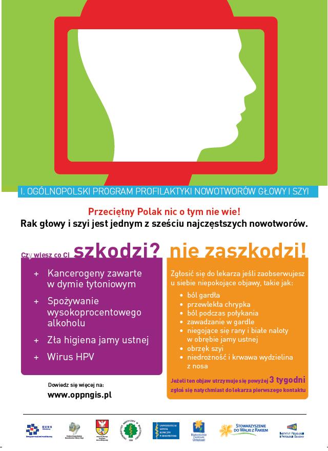 Organizowana akcja profilaktyczna ma na celu zwiększenie świadomości społeczeństwa na temat czynników ryzyka zachorowania na nowotwory głowy i szyi oraz zapoznanie mieszkańców naszego województwa z wczesnymi objawami tych chorób. Ma ona również na celu zwiększenie tzw. „czujności onkologicznej” lekarzy podstawowej opieki zdrowotnej, otolaryngologów, lekarzy stomatologów i lekarzy innych specjalizacji oraz środowiska pielęgniarskiego.