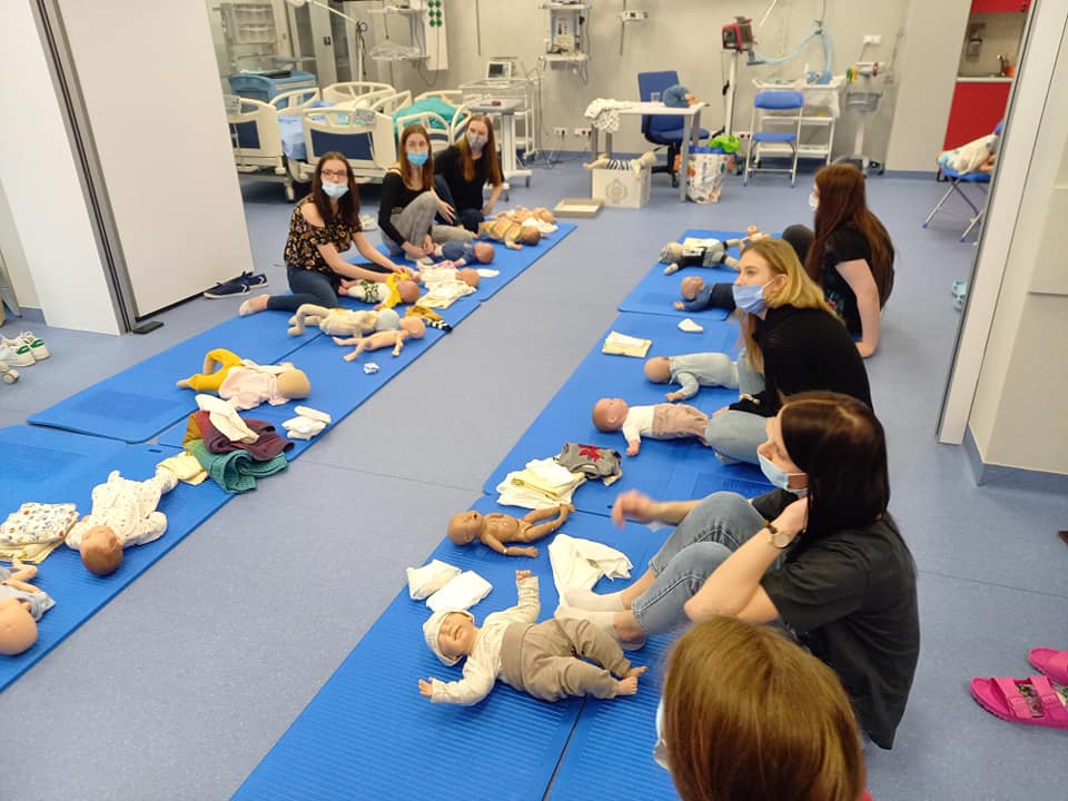 Podczas warsztatów zdobyłyśmy sporo wiedzy teoretycznej i praktycznej w zakresie prawidłowej pielęgnacji oraz postępowania z noworodkiem i niemowlęciem, której nie mamy okazji zdobyć podczas zwykłych zajęć na uczelni. Uczyłyśmy się jak prawidłowo podnosić i odkładać dziecko, jak je przebierać, a także jak układać je do snu. Dowiedziałyśmy się również jak wspierać rodzica i dziecko przez bliskość, dotyk i emocje.