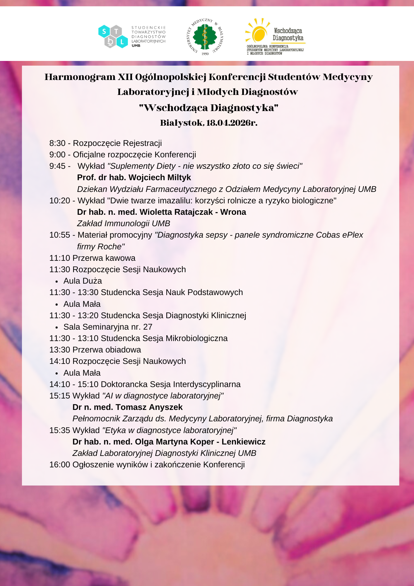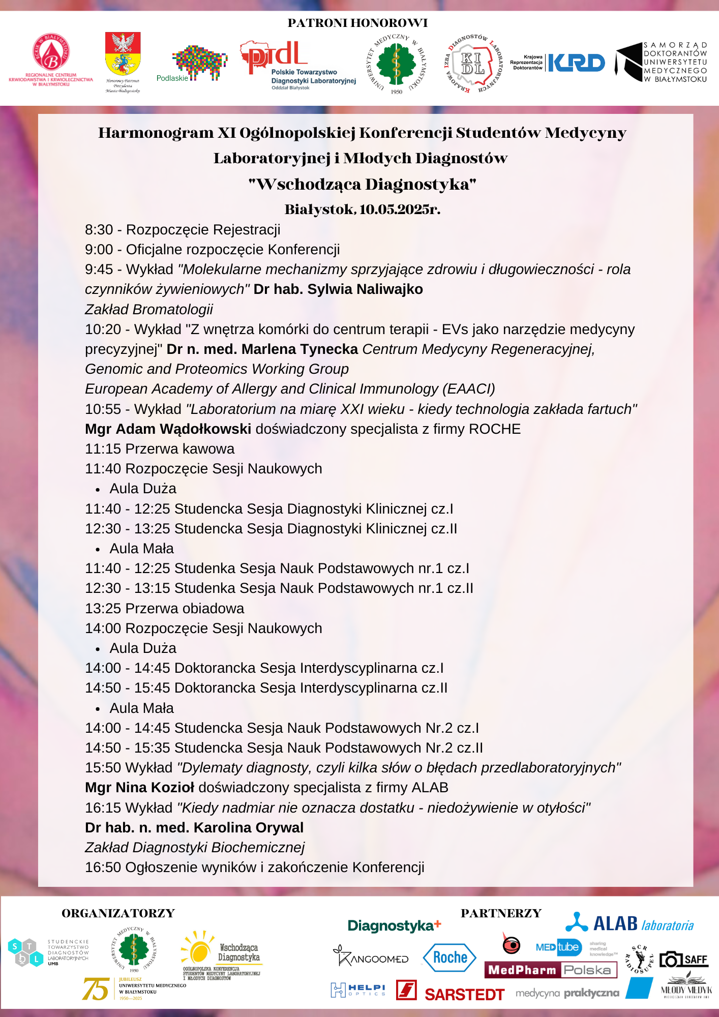 HARMONOGRAM Aby być na bieżąco, zachęcamy do śledzenia wydarzenia na Facebooku Wschodzącej Diagnostyki.